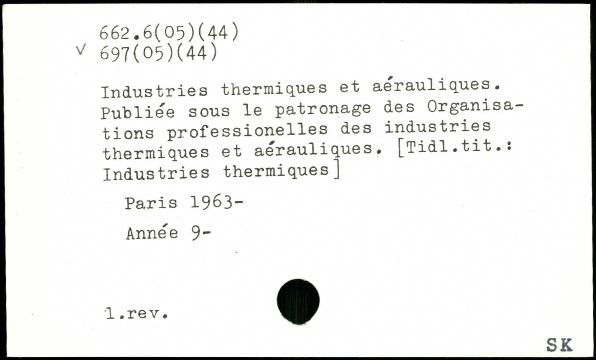 Industries thermiques et aerauliques. i Publiée sous le patronage des Organisations professionelles des industries thermiques et aerauliques. [Tidl.tit.. Industries thermiques]