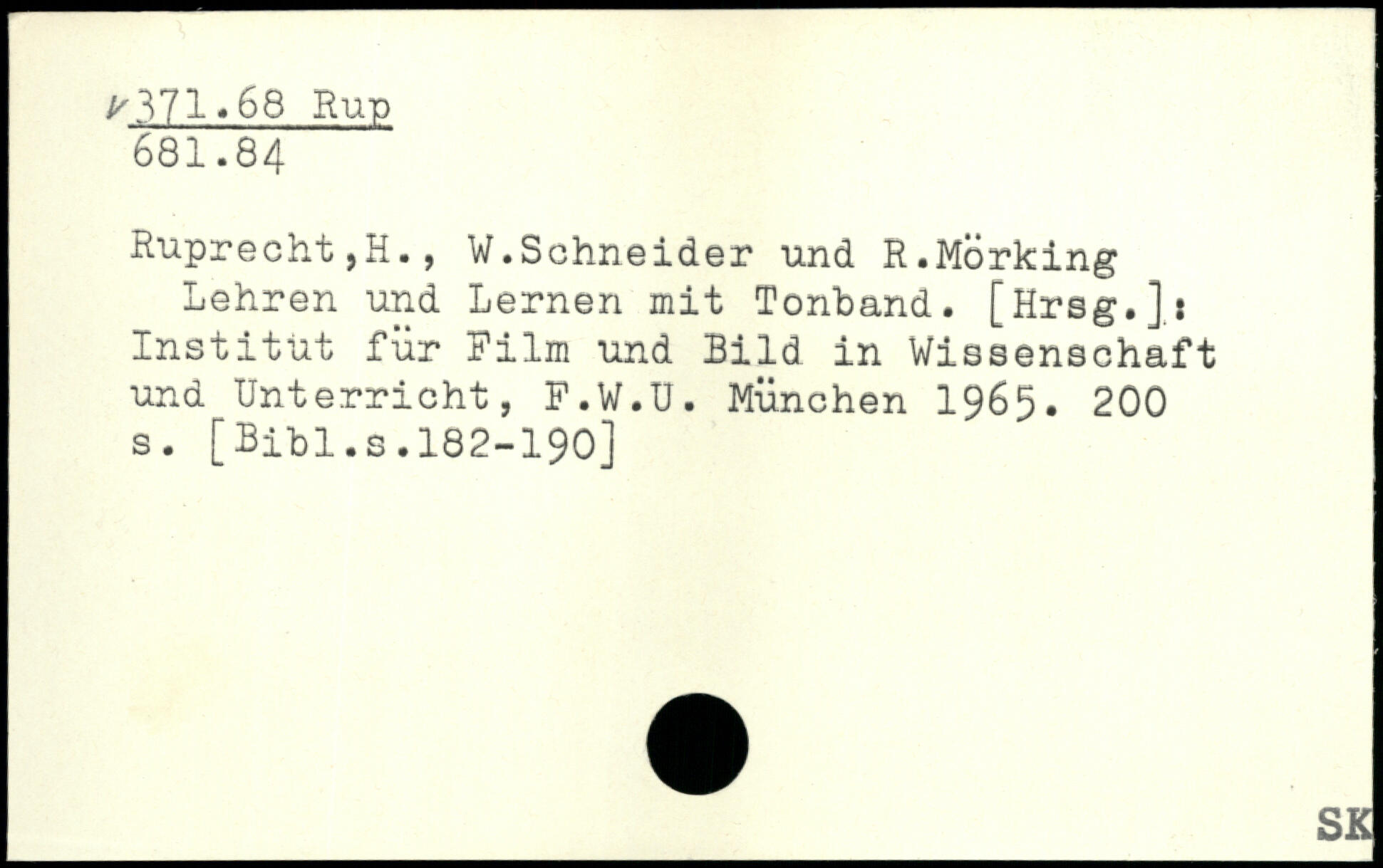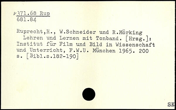 Ruprecht,H., W.Schneider und R.Mörking Lehren und Lernen mit Tonband.