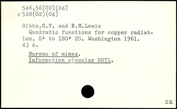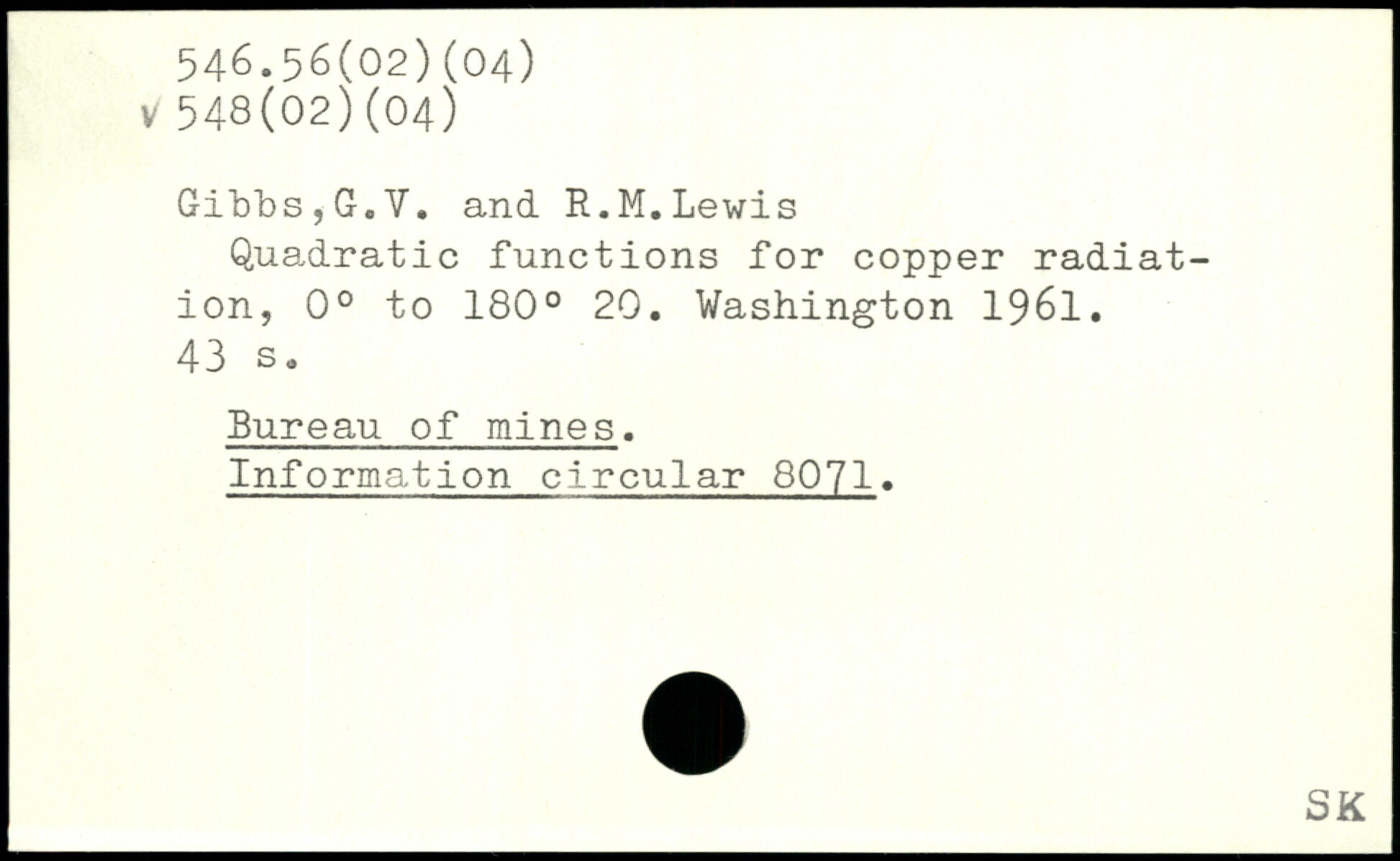 Quadratic functions for copper radiat-: ion, 0. to 180. 20.