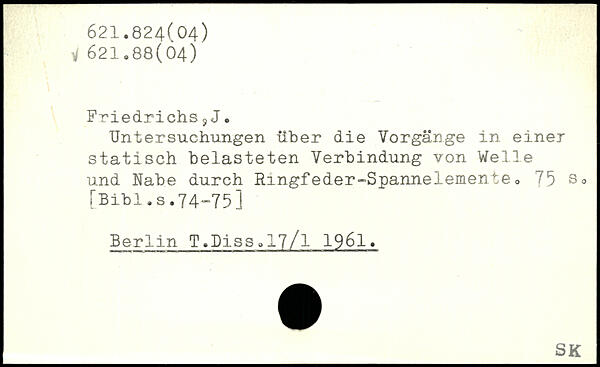 Untersuchungen über die Vorgänge in einer statisch belasteten Verbindung von Welle und Nabe durch Ringfeder-Spannelemente.