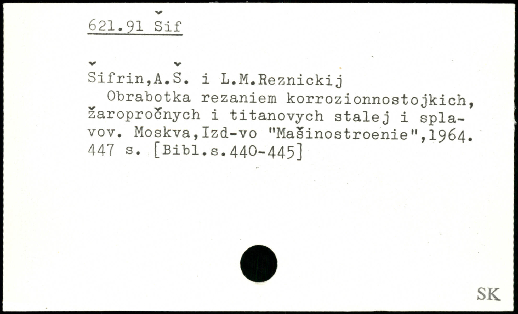 Obrabotka rezaniem korrozionnostojkich, zaroproSnych i titanovych stalej i spla-vov. Moskva,Izd-vo "Masinostroenie",1964.