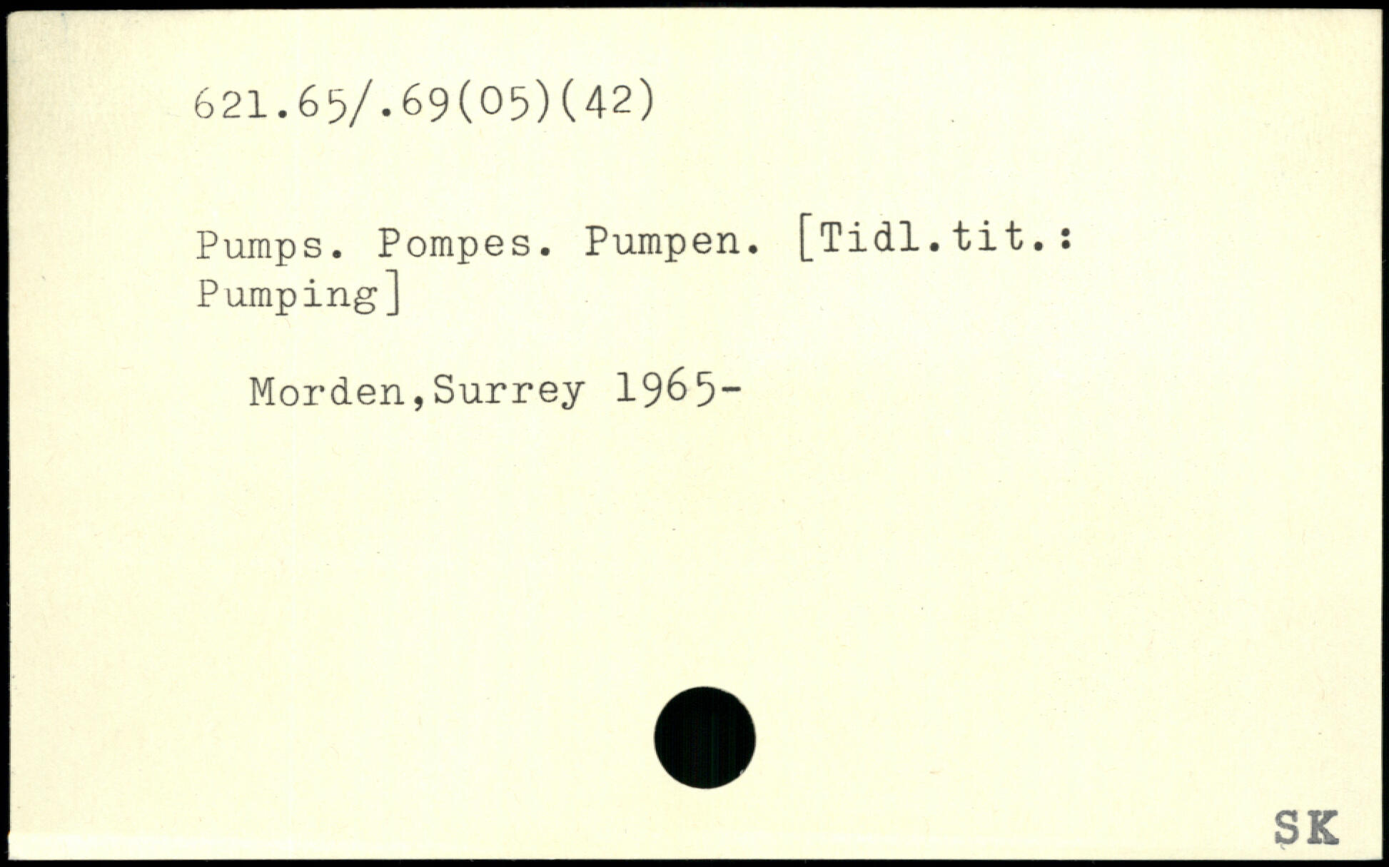 Pumps. Pompes. Pumpen. [Tidl.tit.: Pumping] MorcLen, Surrey 1965-