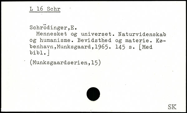 Mennesket og universet. Naturvidenskab og humanisme. Bevidsthed og materie.