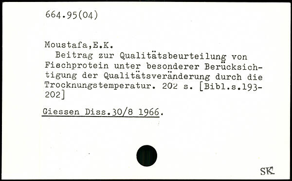Beitrag zur Qualitätsbeurteilung von Fiechprotein unter besonderer Berücksichtigung der Qualitätsveränderung durch die Trocknungstemperatur.