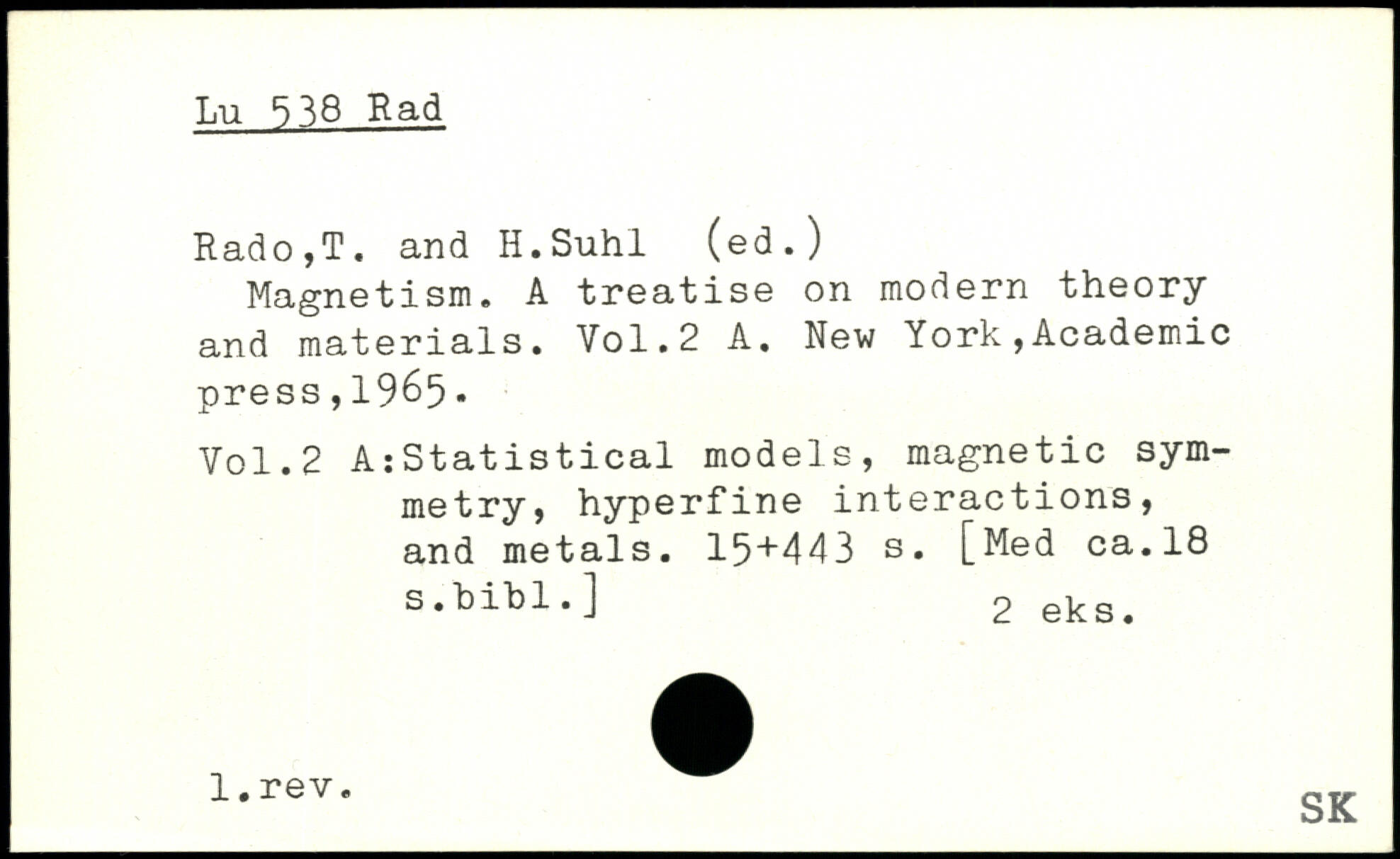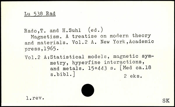 Rado,T. and Il.Suhl (ed.) Magnetism. A treatise on modern theory and materials.