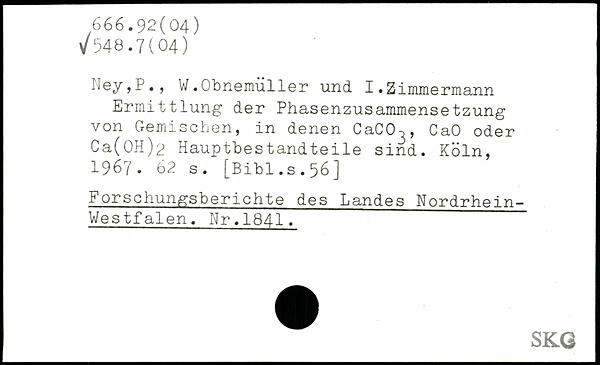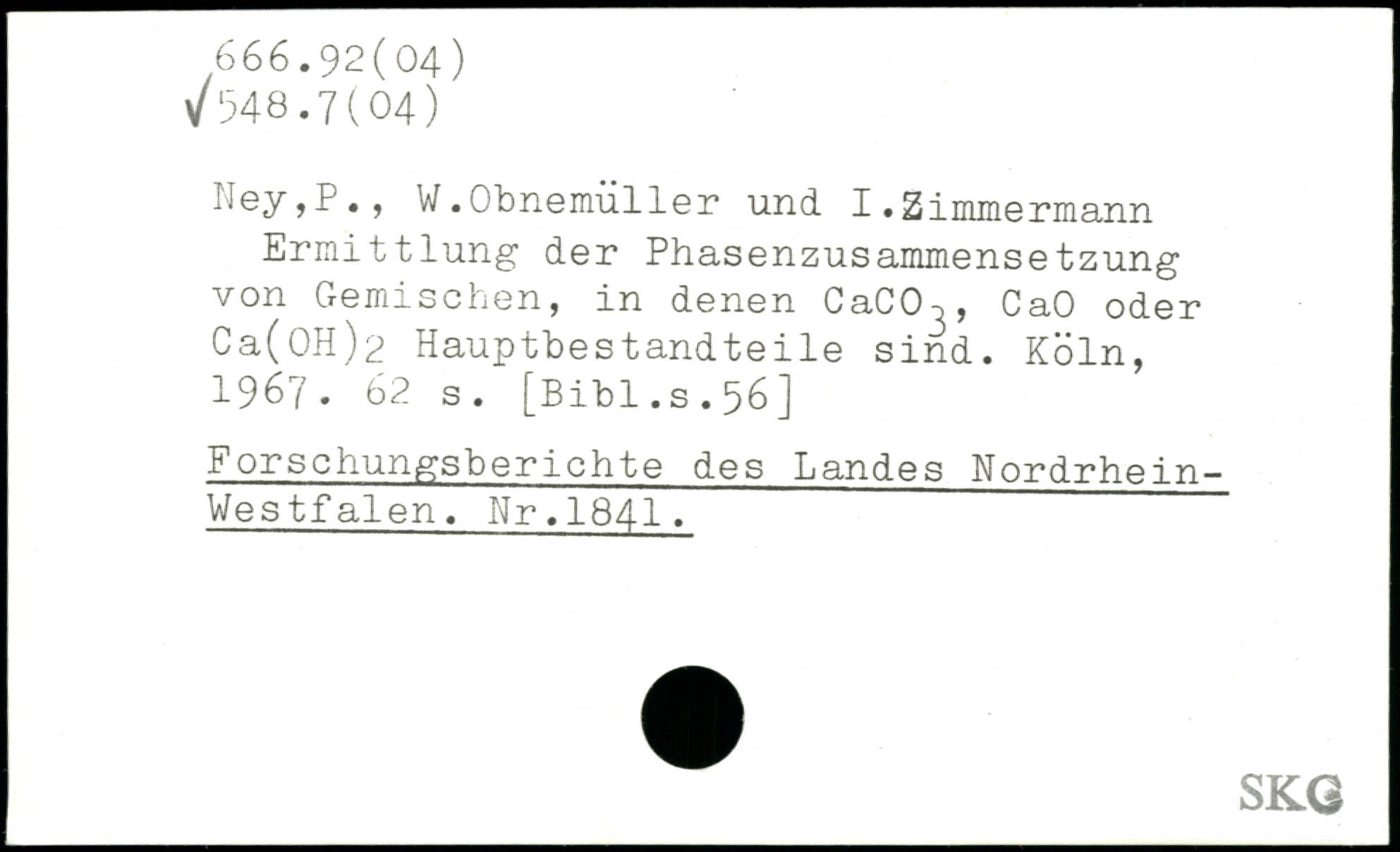 Ney,P., W .Obnemüller und. I. 2immermann Ermittlung der Phasenzusammensetzung von Gemischen, in denen CaCO^, CaO oder Ca(0H)2 Hauptbestandteile sind. Köln, 1967.