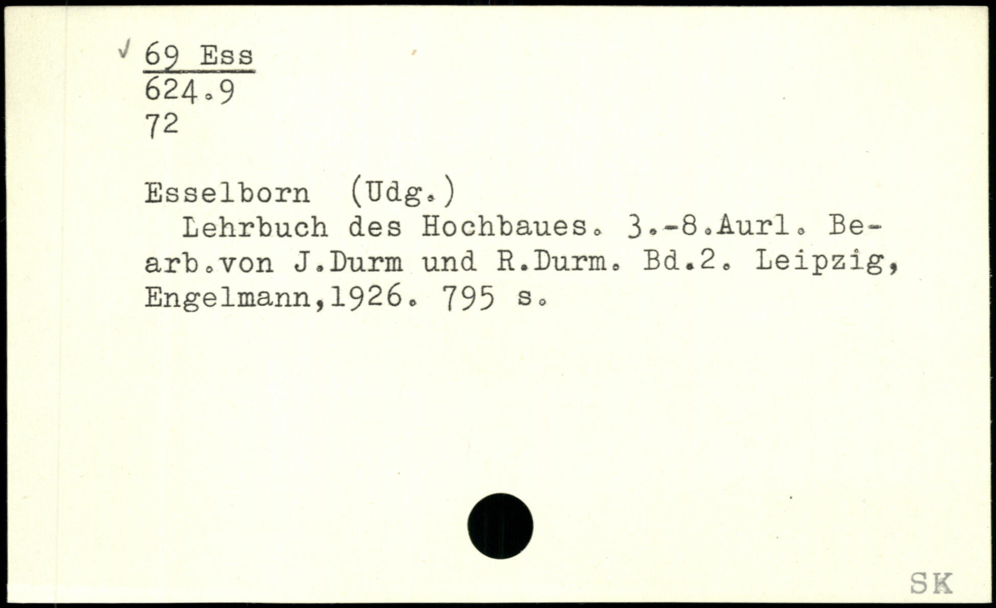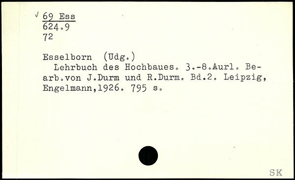 Esselborn (üdg.) Lehrbuch des Hochbaues, 3--8,Aurl, Be-arb,von J.Durm und R.Durm