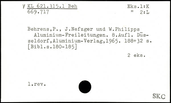 Behrens,P. , J.Nefzger und W.Philipps Aluminium-Freileitungen.