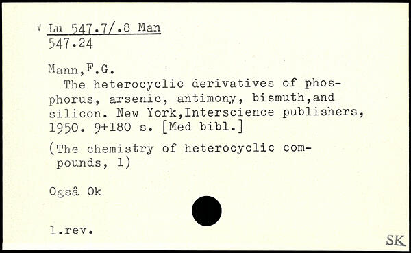 The heterocyclic derivatives of phosphorus, arsenic, antimony, bismuth,and silicon.