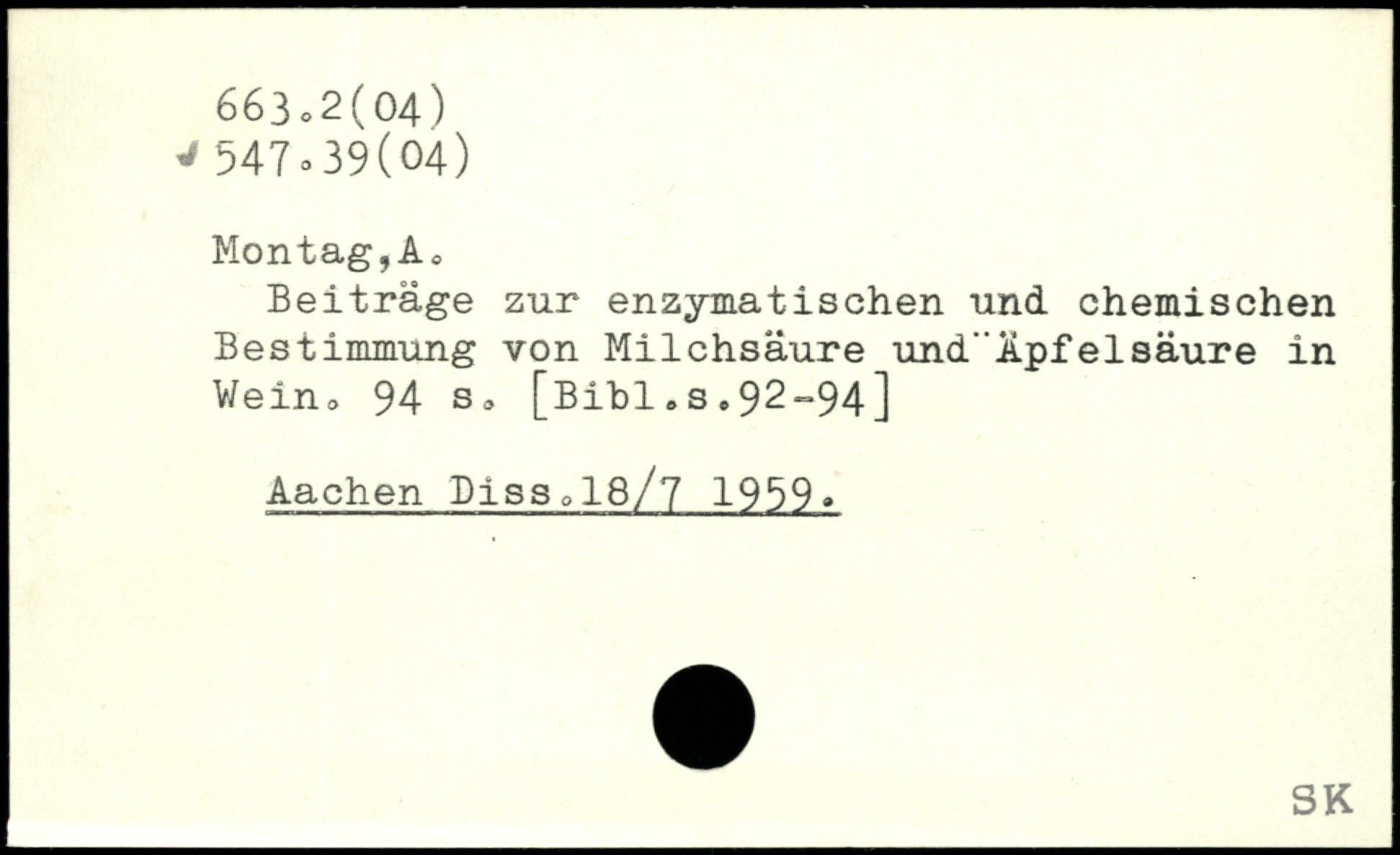 Beiträge zur enzymatischen und chemischen Bestimmung von Milchsäure und'Äpfelsäure in Wein