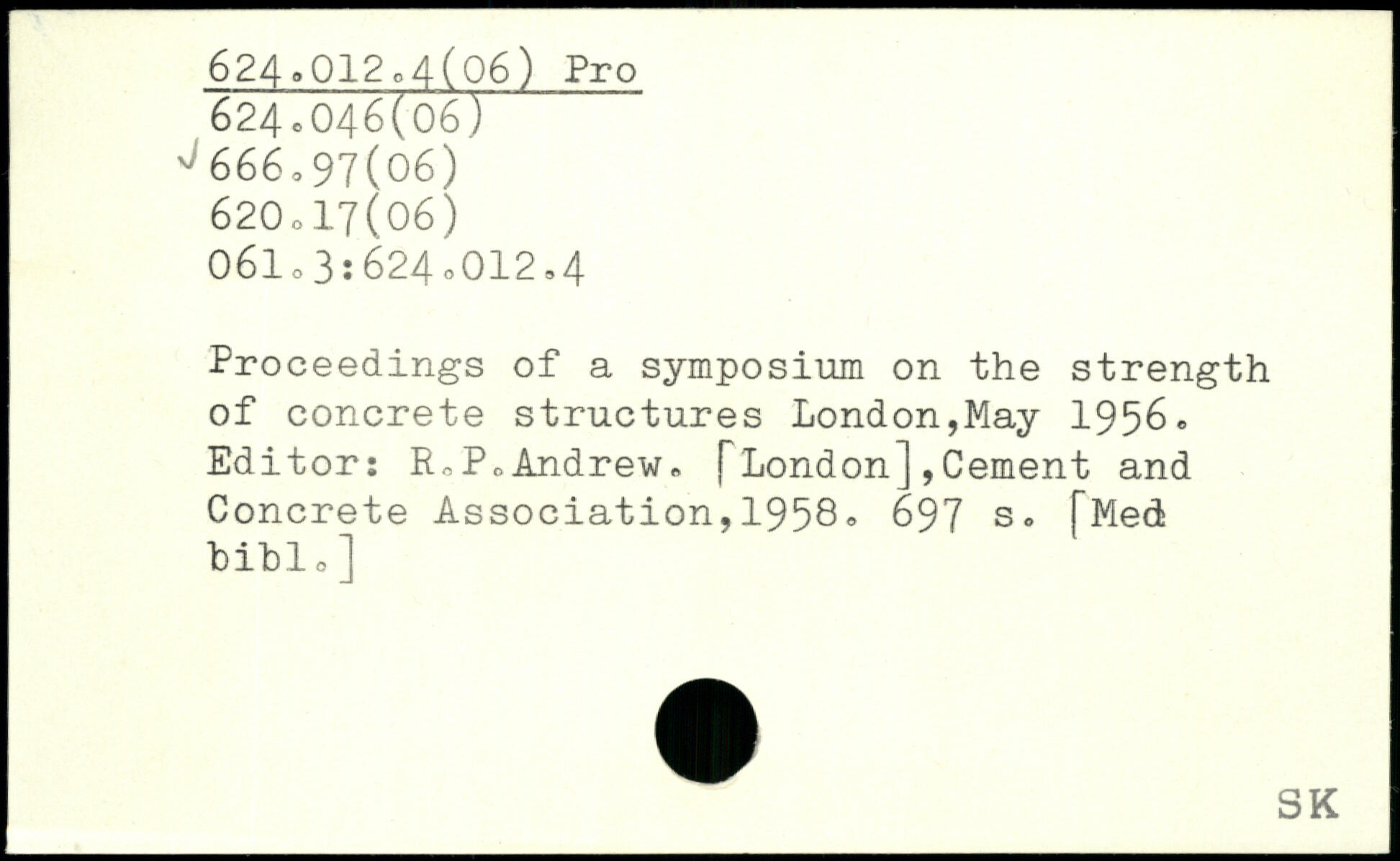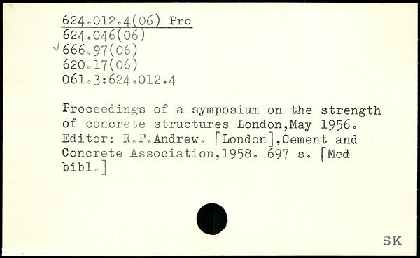 Proceedings of a symposium on the strength of concrete structures London,May 1956,. Editor: RoP. Andrew,. [London] ,Cement and Concrete Association, 1958