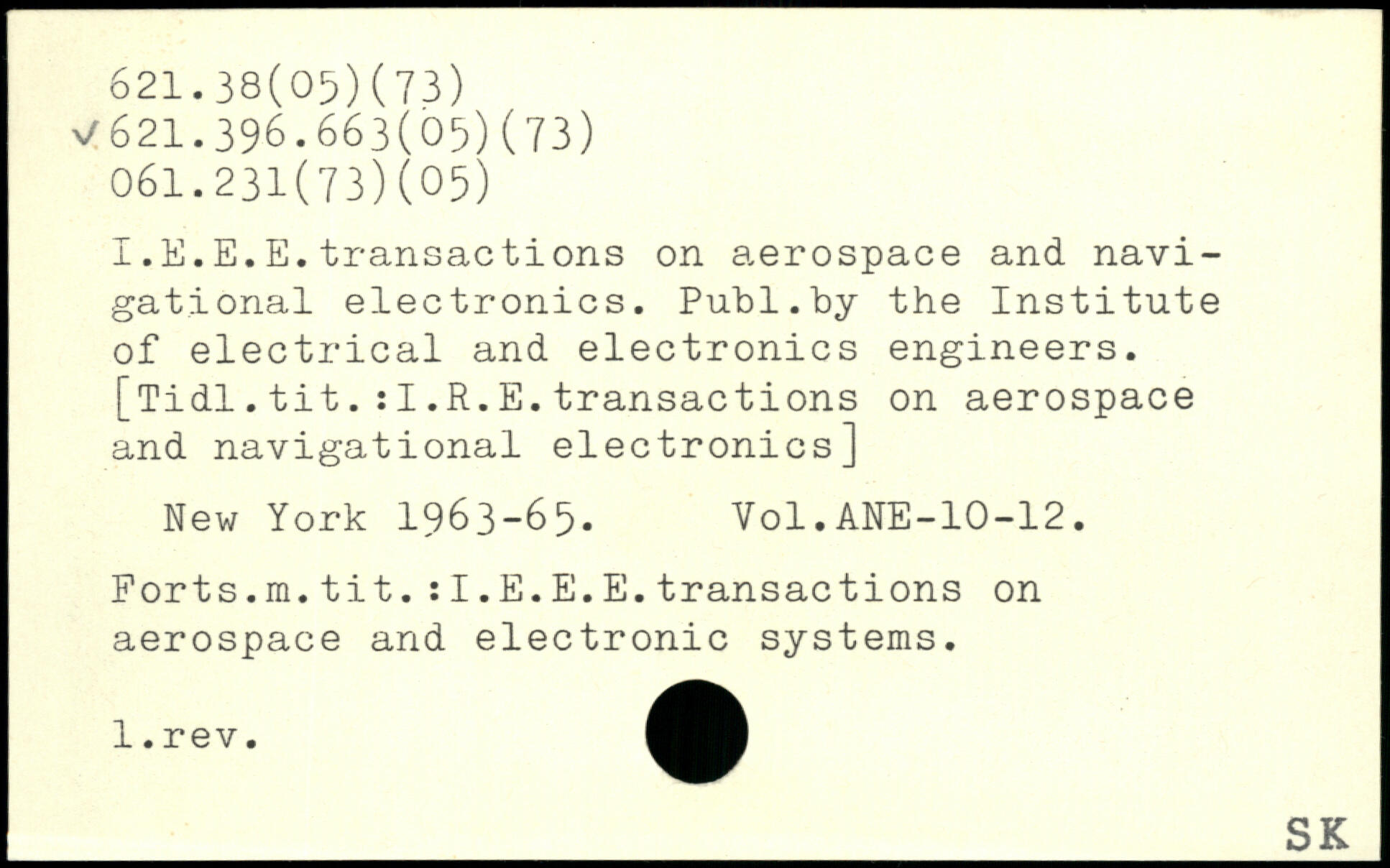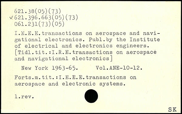 I.E.E.E.transactions on aerospace and navigational electronics. Pull.by the Institute of electrical and electronics engineers.