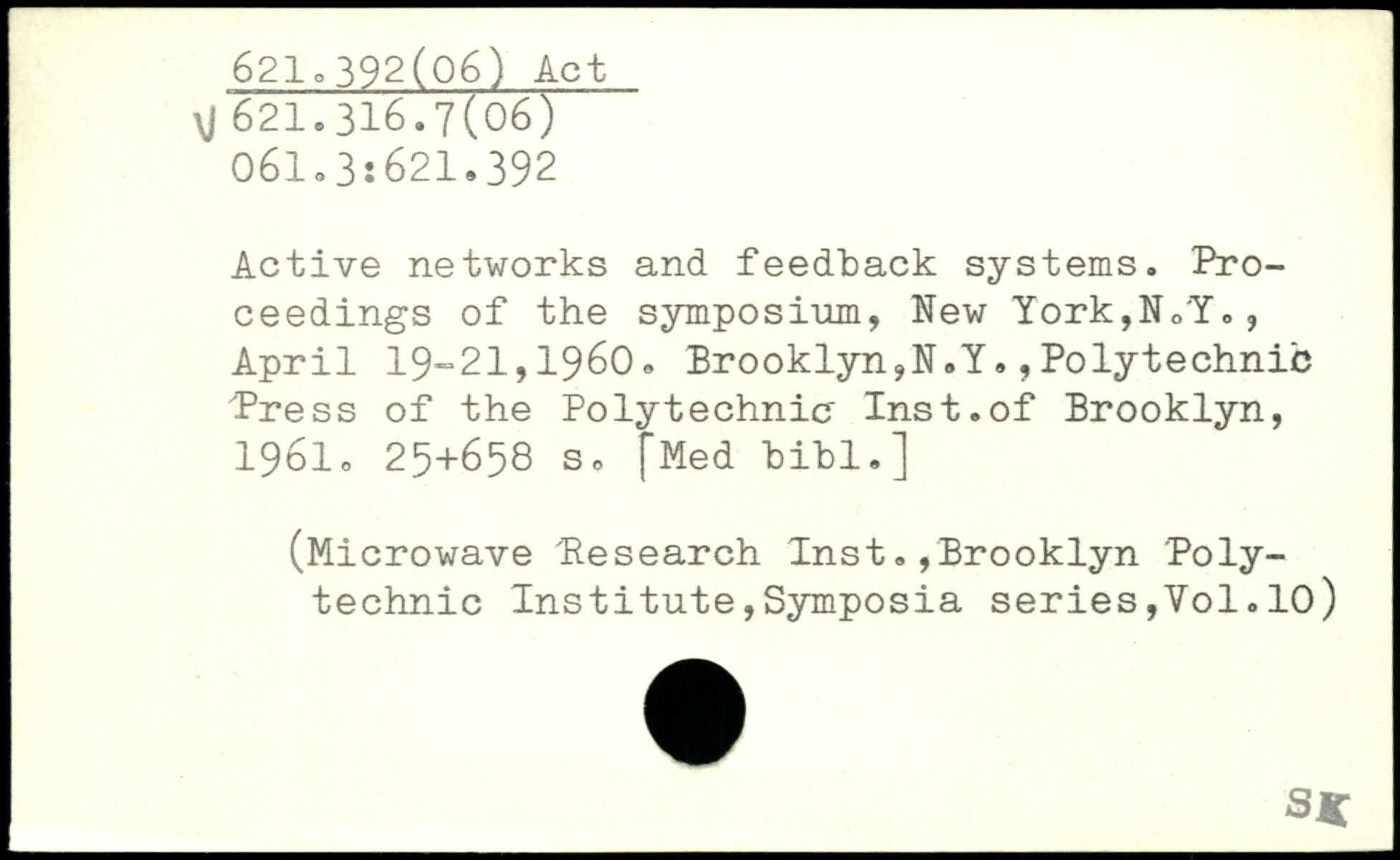 Active networks and feedback systems. Proceedings of the symposium, New York,N0Y,, April 19-21,1960, Brooklyn,N.Y.,Polytechnic Press of the Polytechnic' Inst.of Brooklyn, 1961