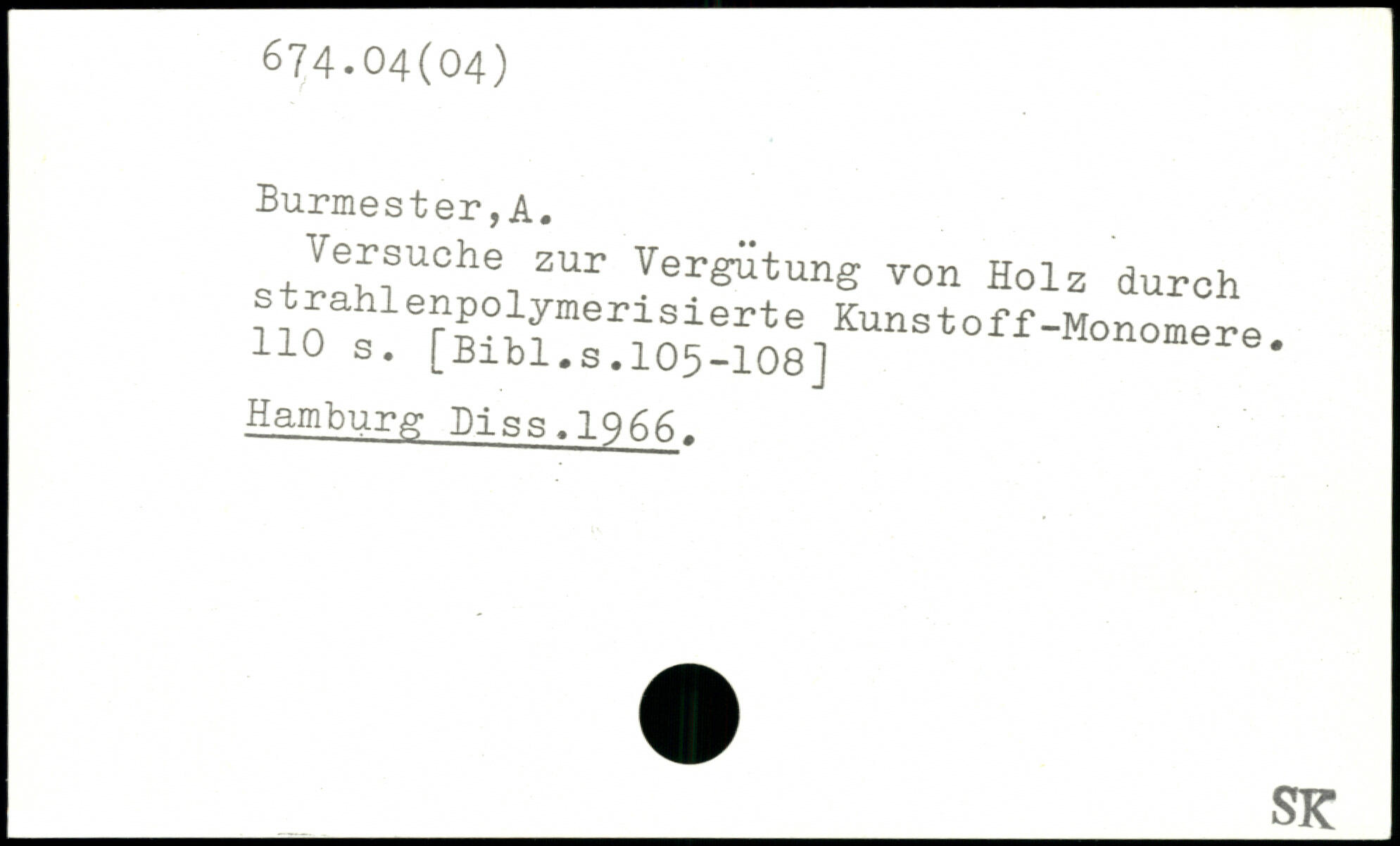 Vemche zur Vergütung von Holz durch noS’SKSsfSa.,1"”’"'-"“,“'"- Hamburg Biss.IQ66.