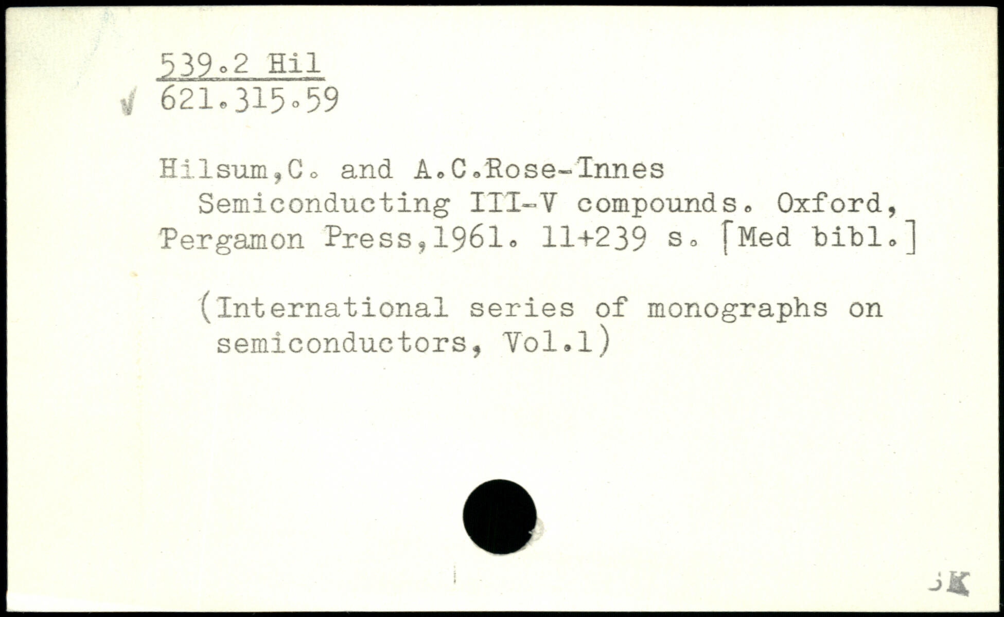 Hilsum,Co and A. C.Rose-Innes Semiconducting II'I-Y compounds.