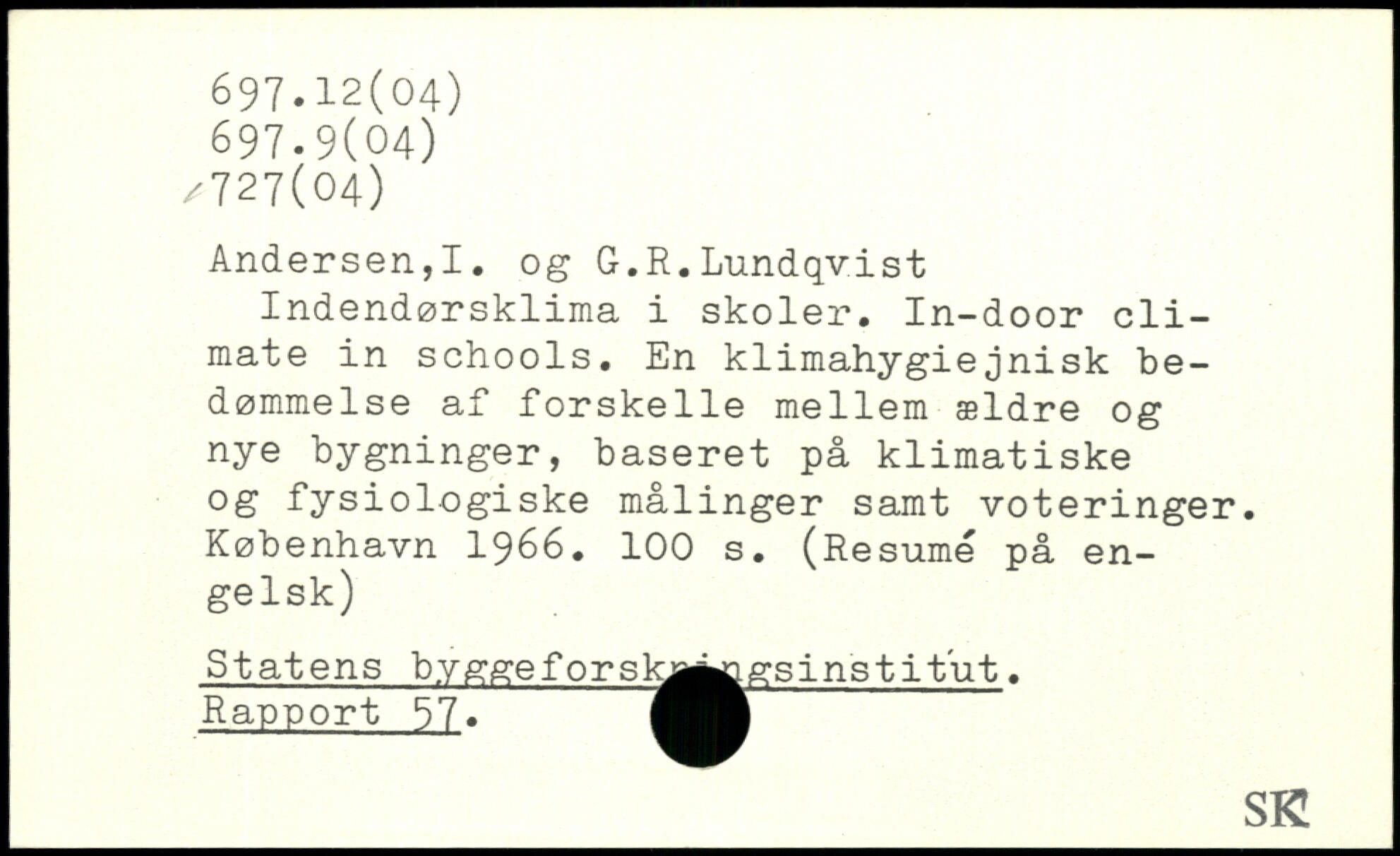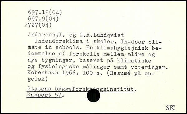 Andersen,I. og G.R.Lundqv.ist Indendørsklima i skoler. In-door cli-mate in schools. En klimahygiejnisk bedømmelse af forskelle mellem ældre og nye bygninger, baseret på klimatiske og fysiologiske målinger samt voteringer.