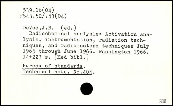 Radiochemical analysis: Activation analysis, instrumentation, radiation techniques, and radioisotope techniques July 1965 through June 1966.