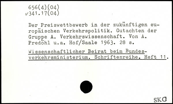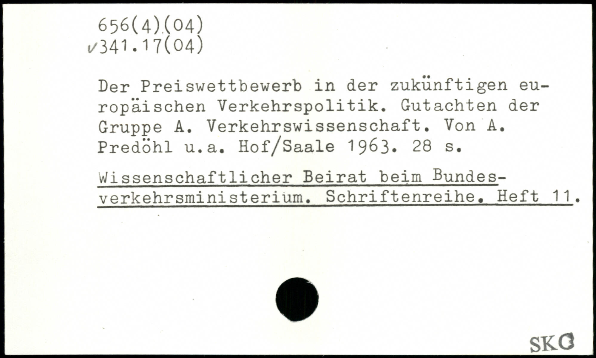 Der Preiswettbewerb in der zukünftigen europäischen Verkehrspolitik. Gutachten der Gruppe A. Verkehrswissenschaft. Von A. Predöhl u.a. Hof/Saale 1963