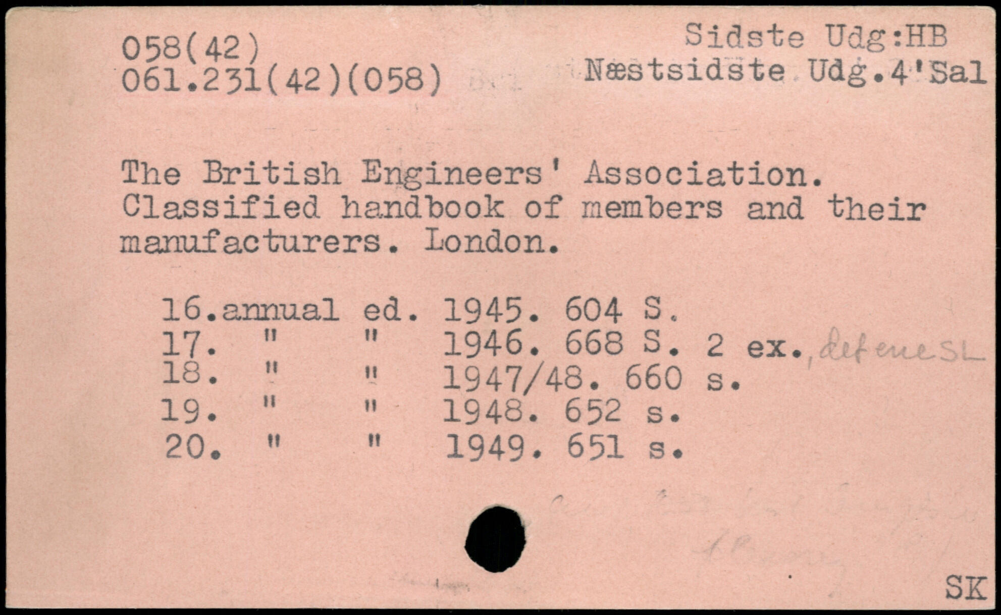 The British Engineers' Association. Classified handbook of members and their manufacturers. London. 16. annual ed. 1945.