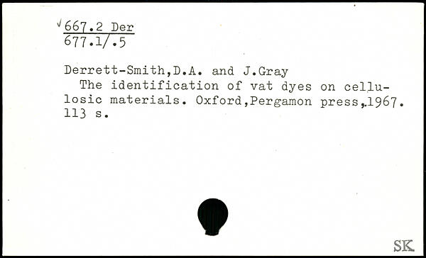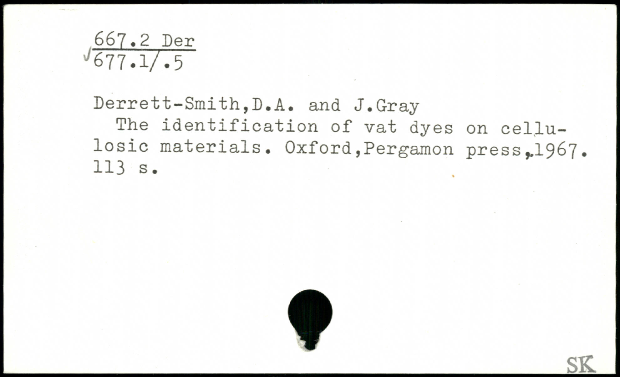 The identification of vat dyes on cellu-losic materials. Oxford,Pergamon press^1967.