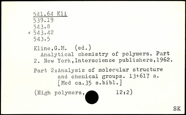 UDK: 541.64 Kli, 539.19, 543.8, 543.42, 543.5