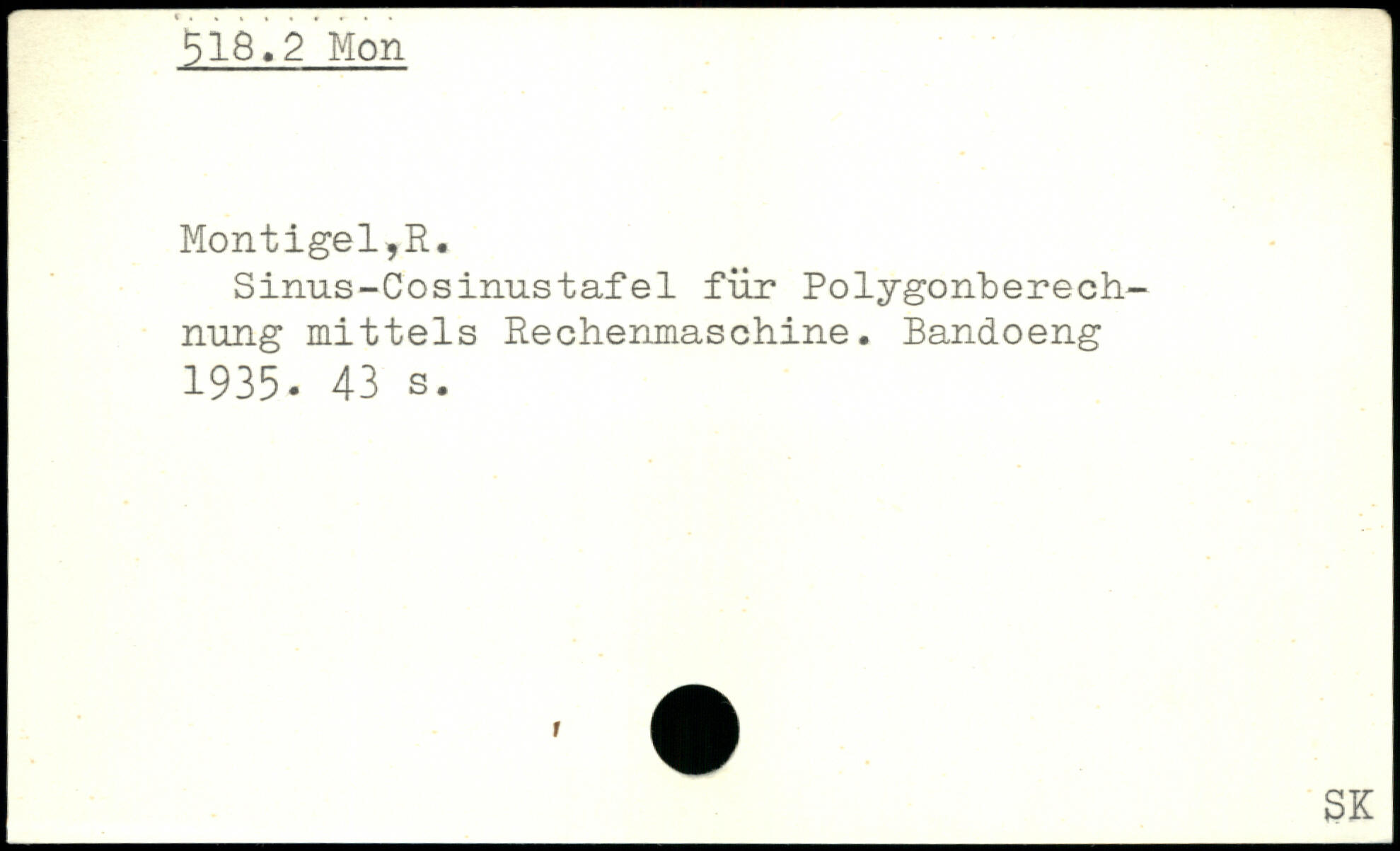 Sinus-Cosinustafel für Polygonberech-nung mittels Rechenmaschine. Bandoeng 1935.