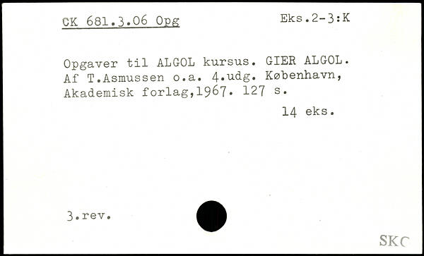 Opgaver til ALGOL kursus, GIER. ALGOL. Af T. Asmus s en o.a. 4,ulg. København, Akademisk forlag,19&7