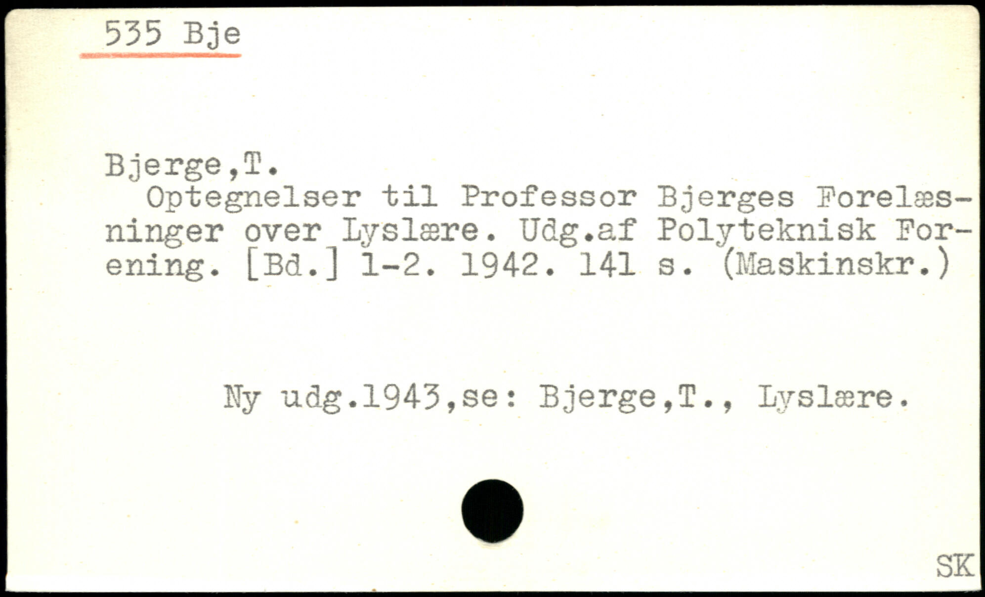 Optegnelser til Professor Bjerges Forelæsninger over Lyslære. Udg.af Polyteknisk Forening. [Bd.] 1-2. 1942.