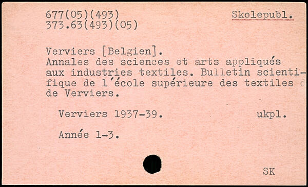 Verviers [Belgien]. Annales des sciences et arts appliques aux industries textiles. Bulletin scientifique de l'école supérieure des textiles c de Verviers. Verviers 1937-39. ukpl. Année 1-3. W SK