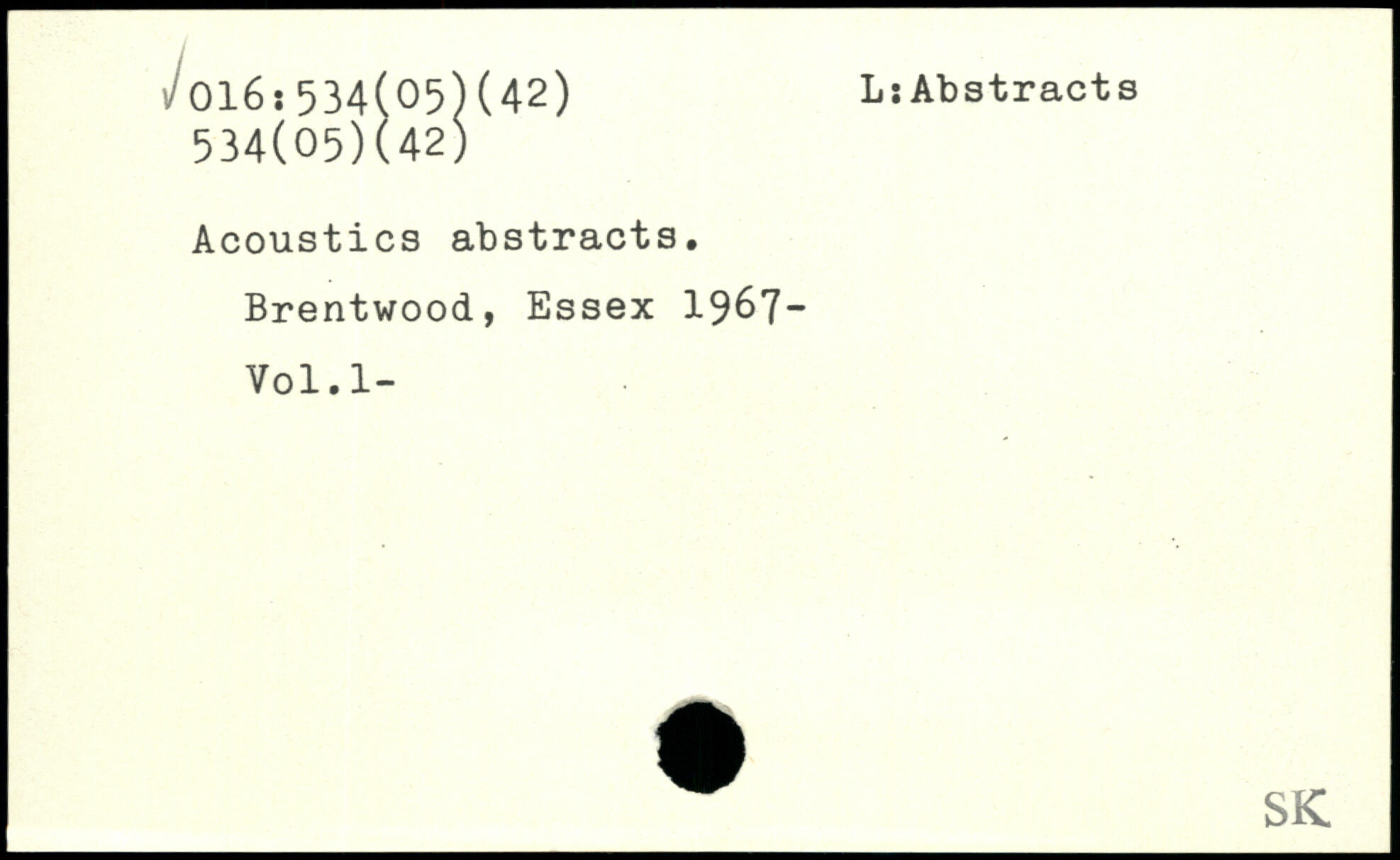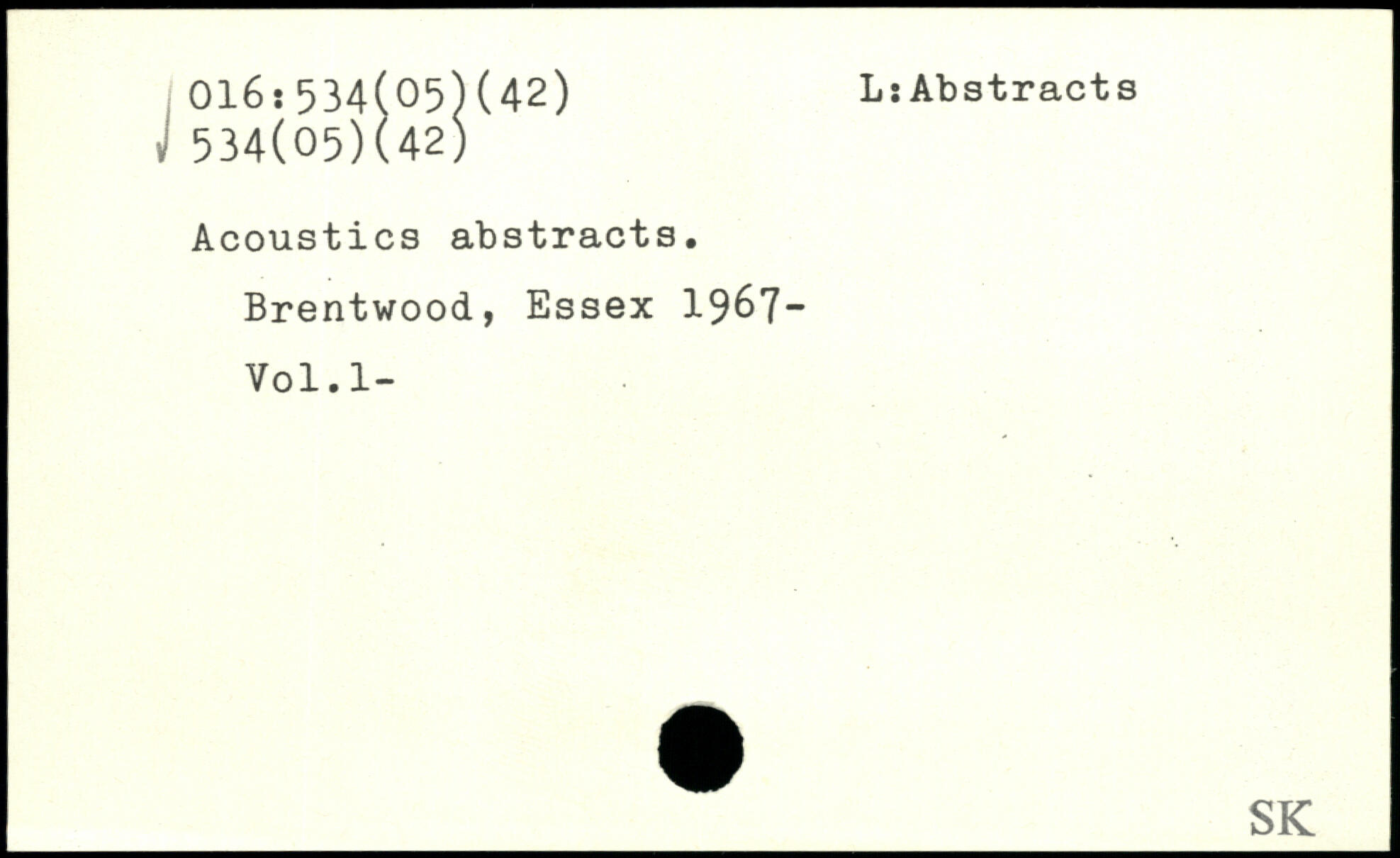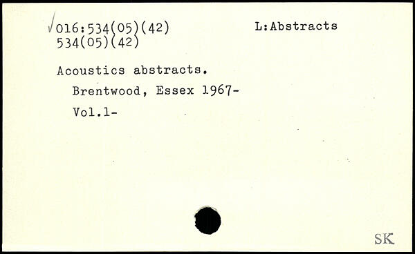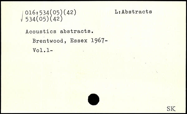 Acoustics abstracts. Brentwood, Essex 1967-Vol.l-