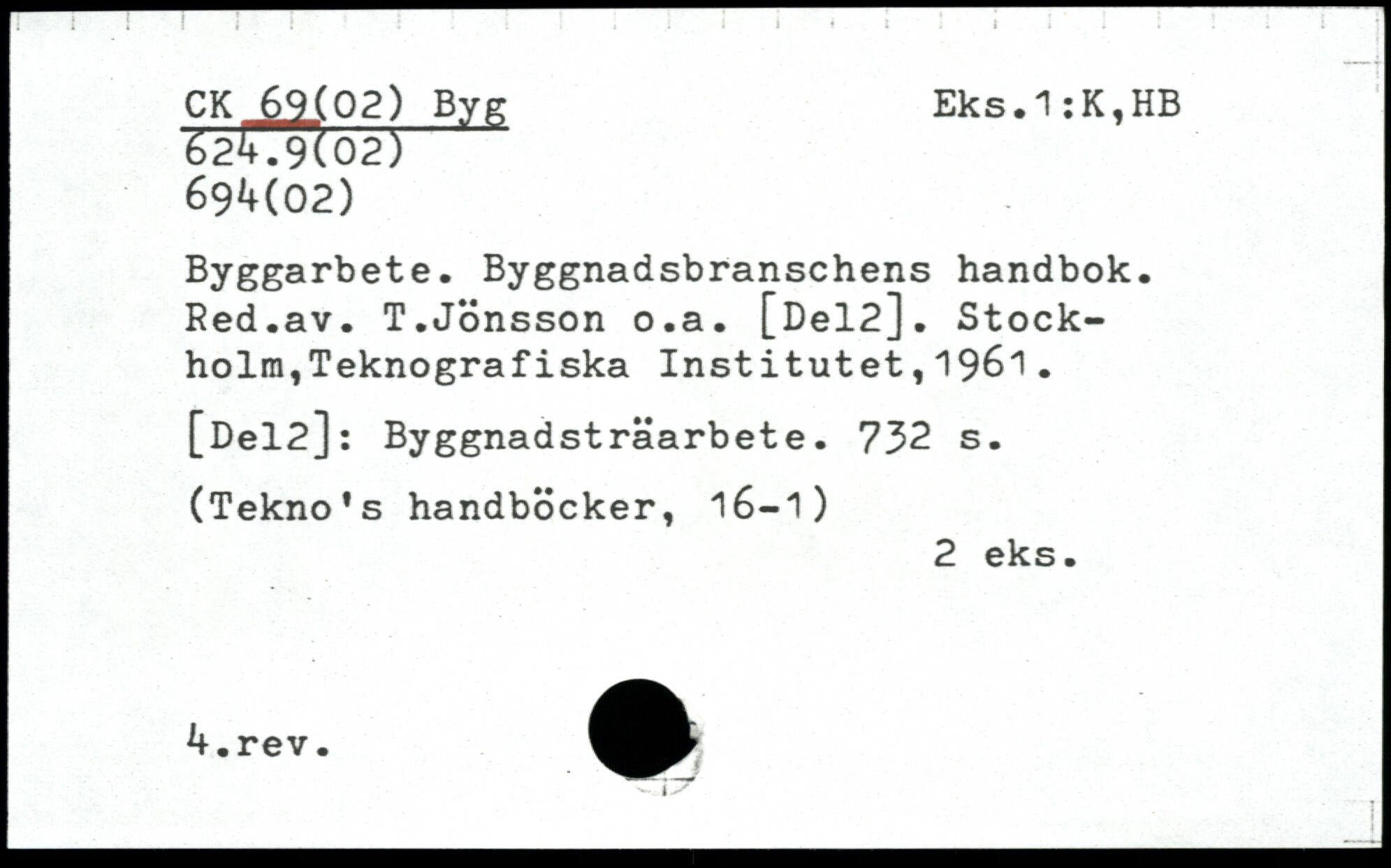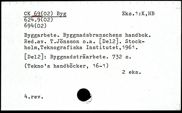 Byggarbete. Byggnadsbranschens handbok. Red.av. T.Jönsson o.a. [Del2].