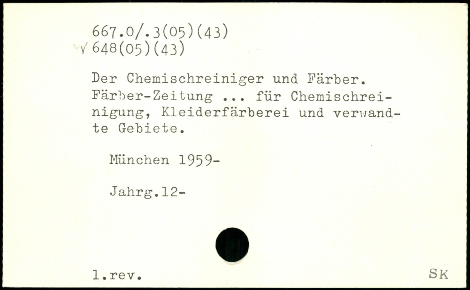 Der Chemischreiniger und Färber. Färber-Zeitung ... für Chemischrei-nigung, Kleiderfärberei und verv/and-te Gebiete.