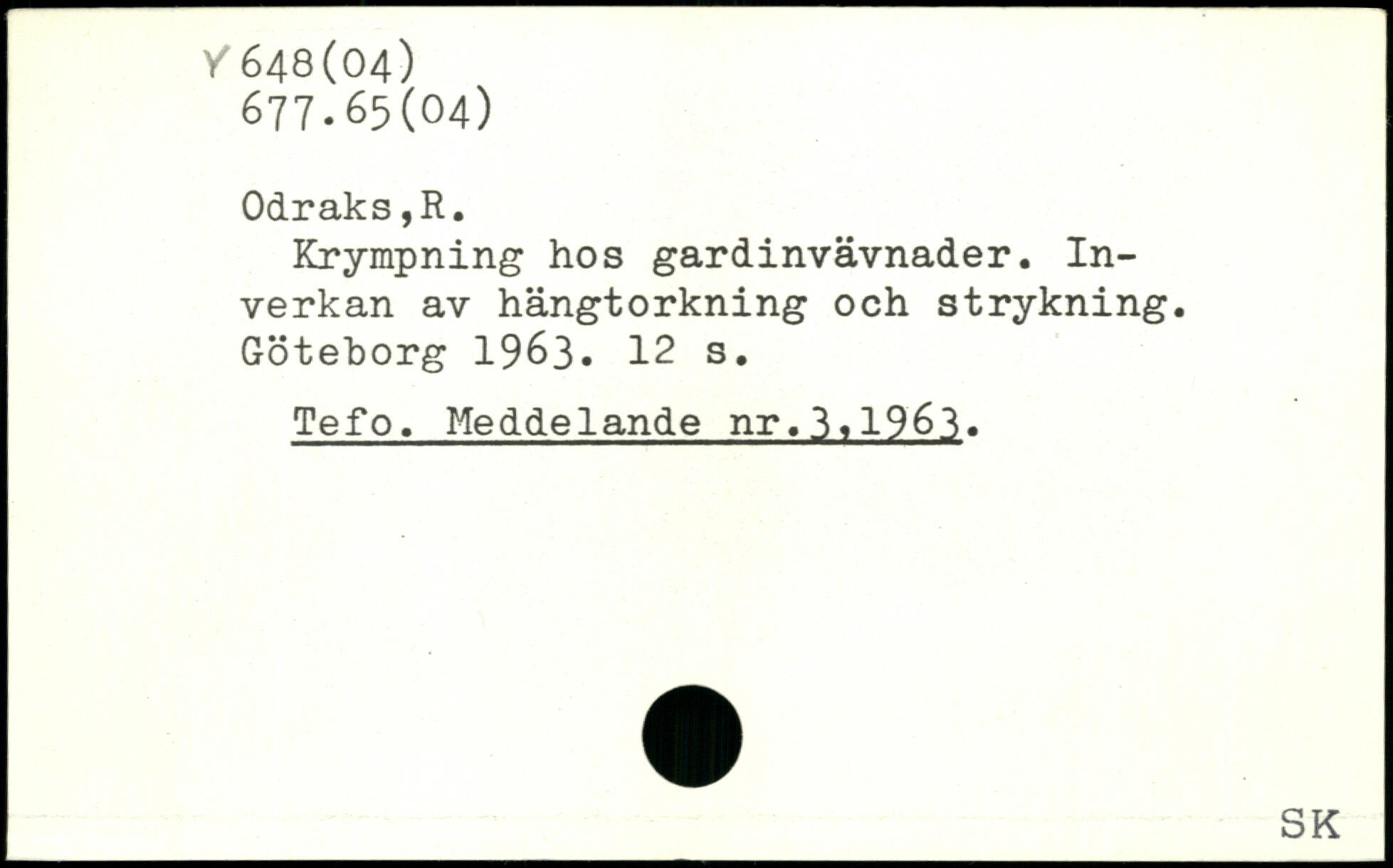 Krympning hos gardinvävnader. Inverkan av hängtorkning och strykning. Götehorg 1963.