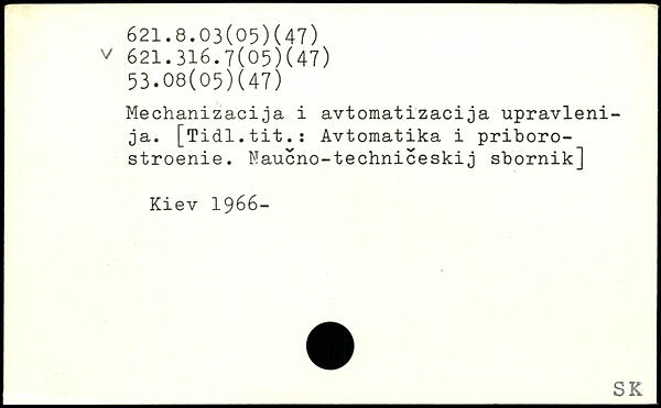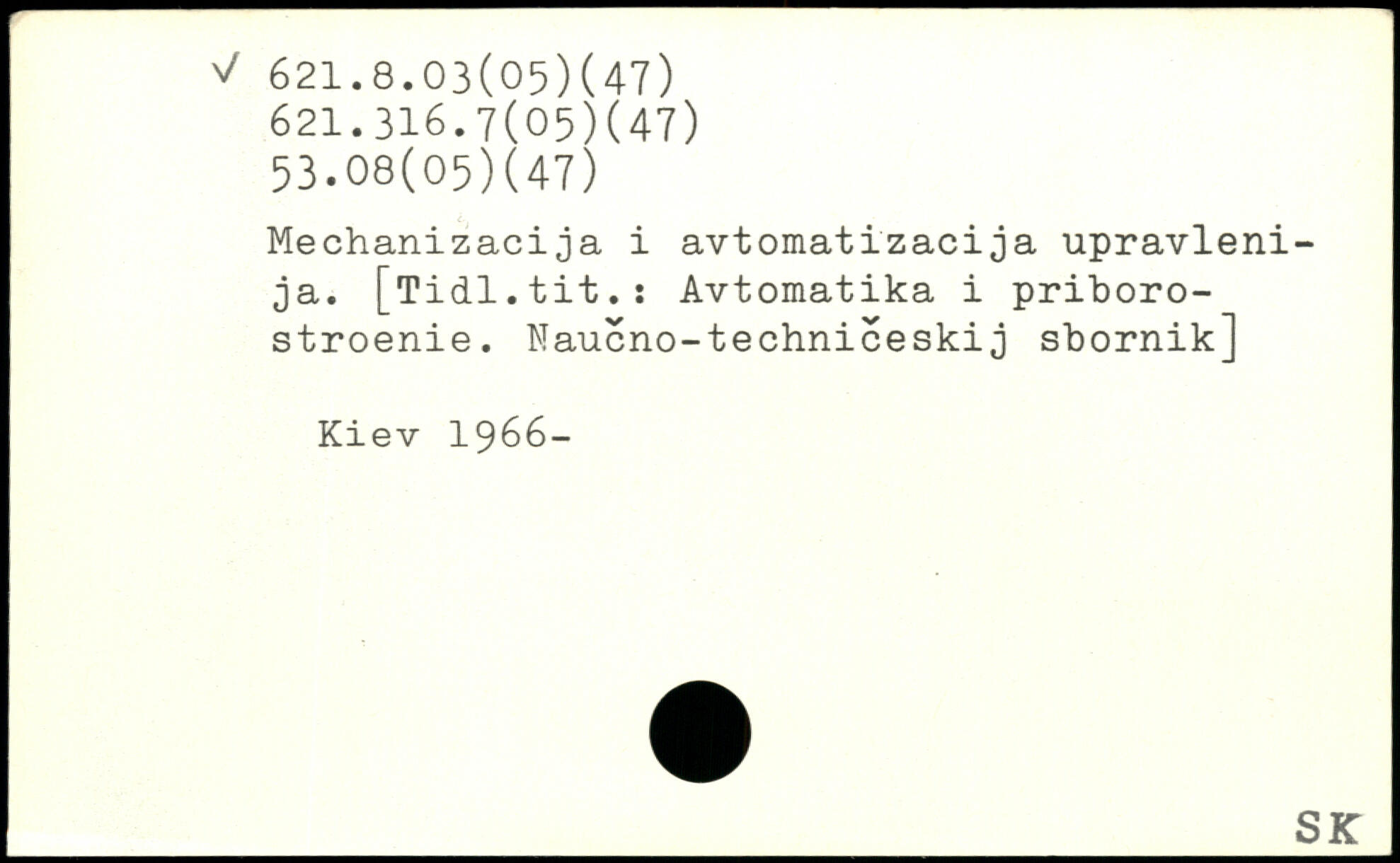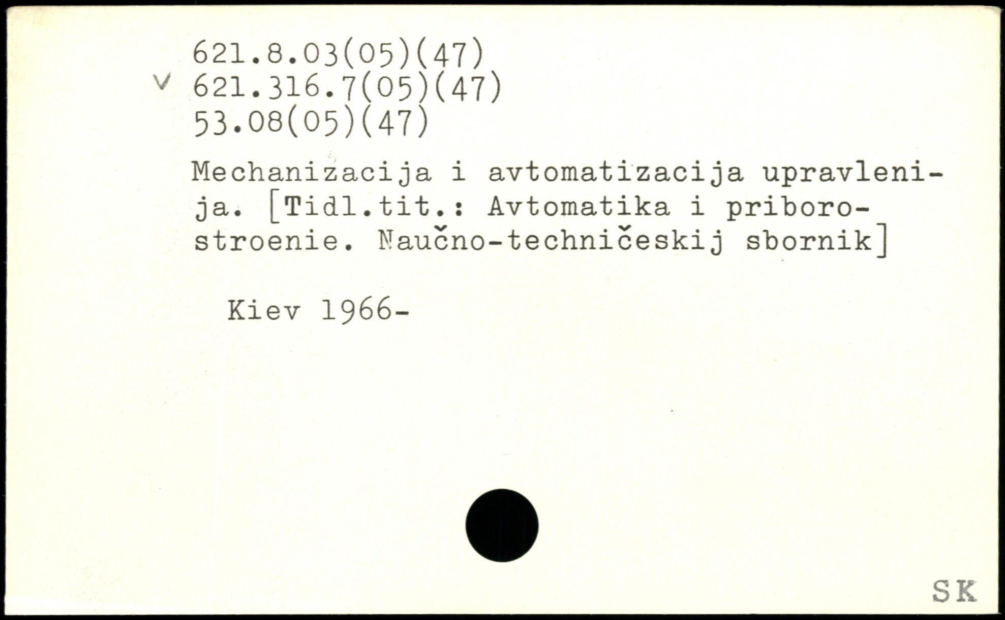 Mechanizacija i avtomatizacija upravleni-ja. [Tidl.tit.: Avtomatika i priboro-stroenie. Naucno-techniceskij sbornik] Kiev 1966-