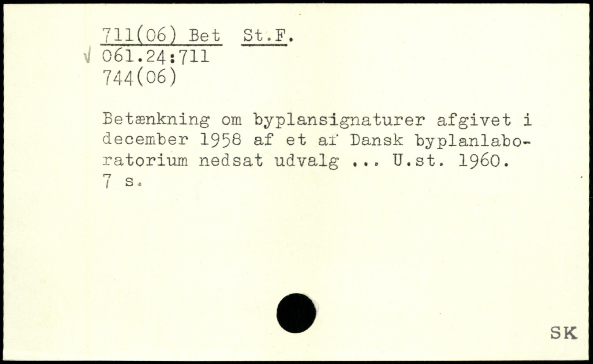 Betænkning om byplansignaturer afgivet i december 1950 af et af Dansk byplanlaboratorium nedsat udvalg ... U.st. 1960.