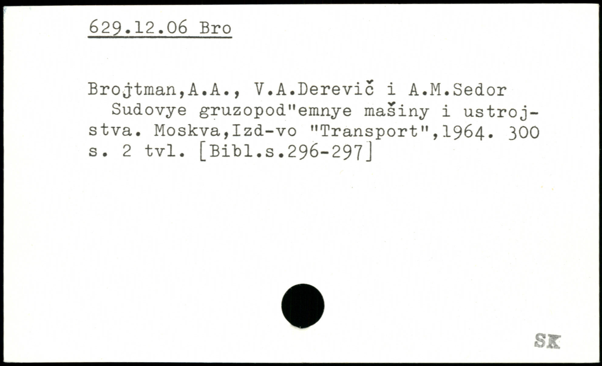Brojtman,A.A., V.A.Derevic i A.M.Sedor Sudovye gruzopod"emnye masiny i ustroj-stva. Moskva,Izd-vo "TransportM,1964. 3OO s. 2 tv1.