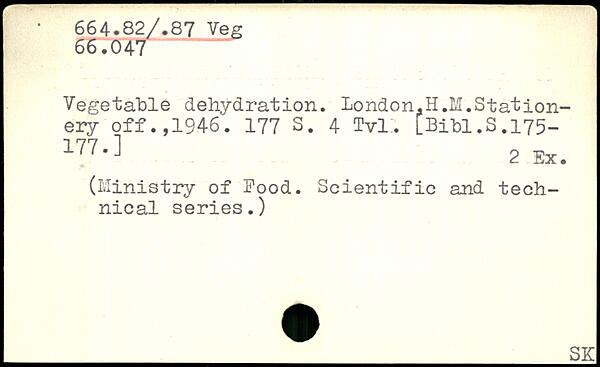 Vegetable dehydration. London,H.M.Stationery off.,1946. 177 5. 4 Tvl.