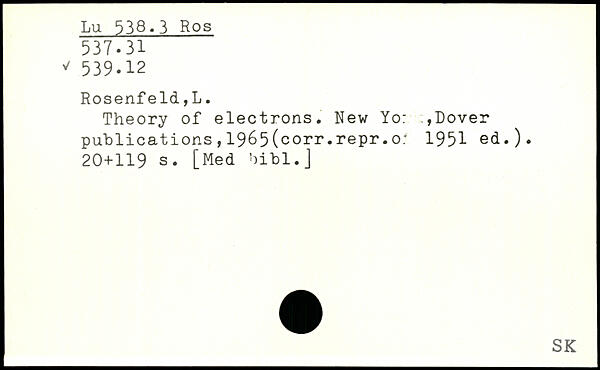 Theory of electrons. New Yo: ,Dover publications,1965(corr.repr.o: