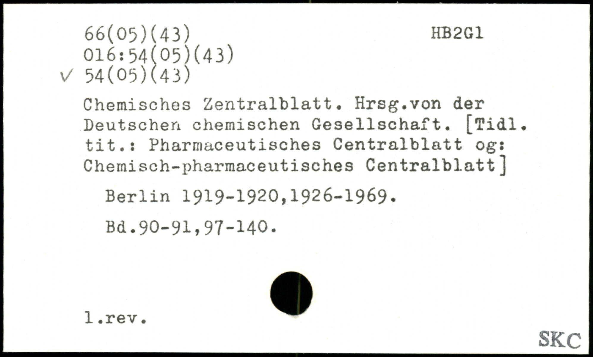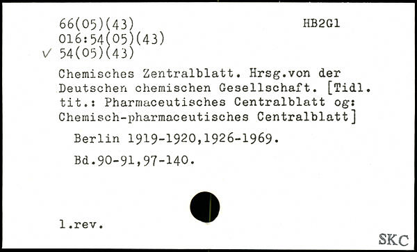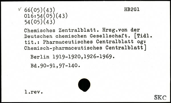 Chemisches Zentralblatt. Hrsg.von der Deutschen chemischen Gesellschaft. [Tidl. tit.: Pharmaceutisches Centralblatt og: Chemisch-pharmaceutisches Centralblatt]