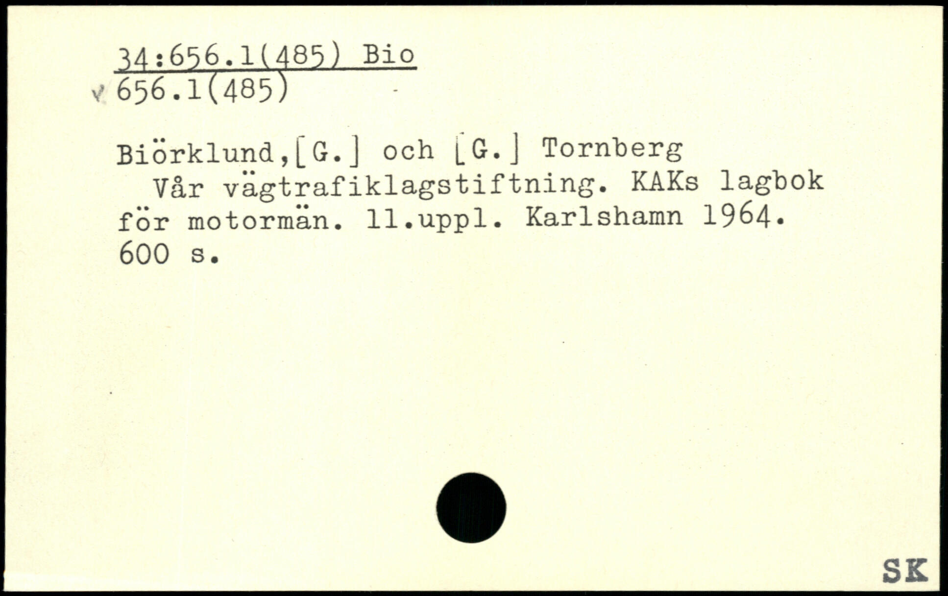 Biörklund,[G.J och [G.J Tornberg Vår vägtrafiklagstiftning. KAKs lagbok för motormän, ll.uppl. Karlshamn 1964.