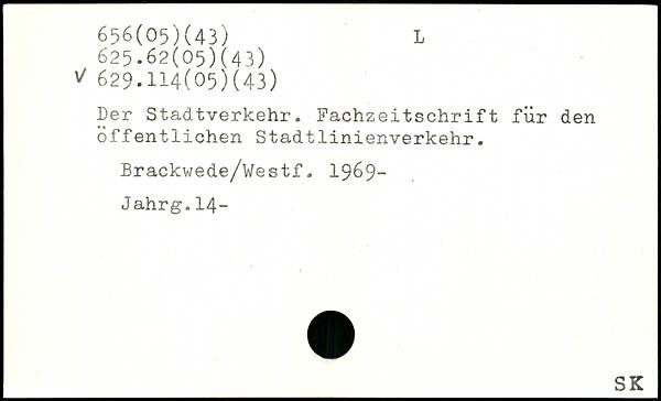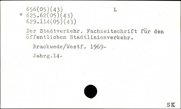 Der Stadtverkehr. Fachzeitschrift für den öffentlichen Stadtlinienverkehr. Brackwede/Westf. 1969- Jahrg.14-