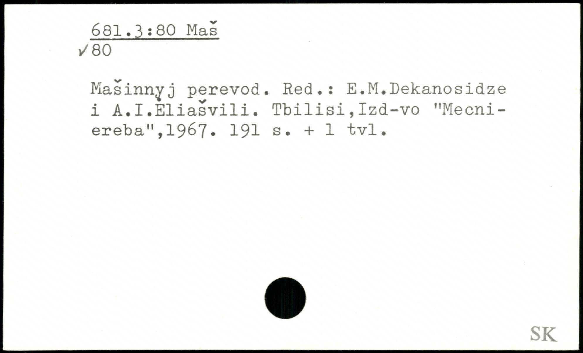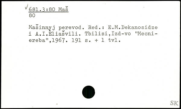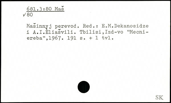 Masinnyj perevod. Red.: E.M.Dekanosidze i A.I.Eliasvili. Tbilisi,Izd-vo "Mecni-ereba",1967.