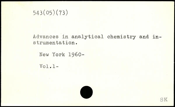 Advances in analytical chemistry and instrumentation. hew York 1960- Vol.l-