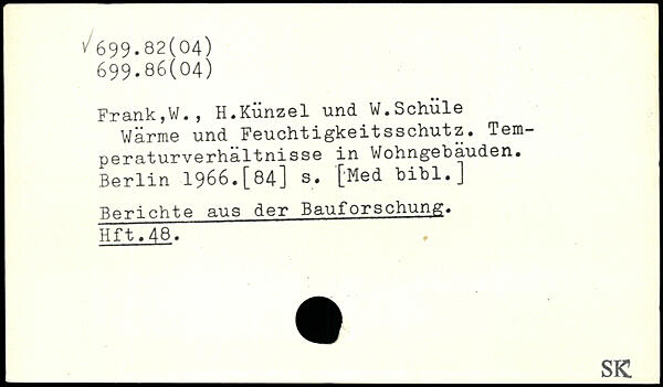 Frank,W., H.Kunzel und W.Schul© I Warm© und Feuchtigkeitsschutz. Tein-peraturverhaltnisse in Wohngebäuden.