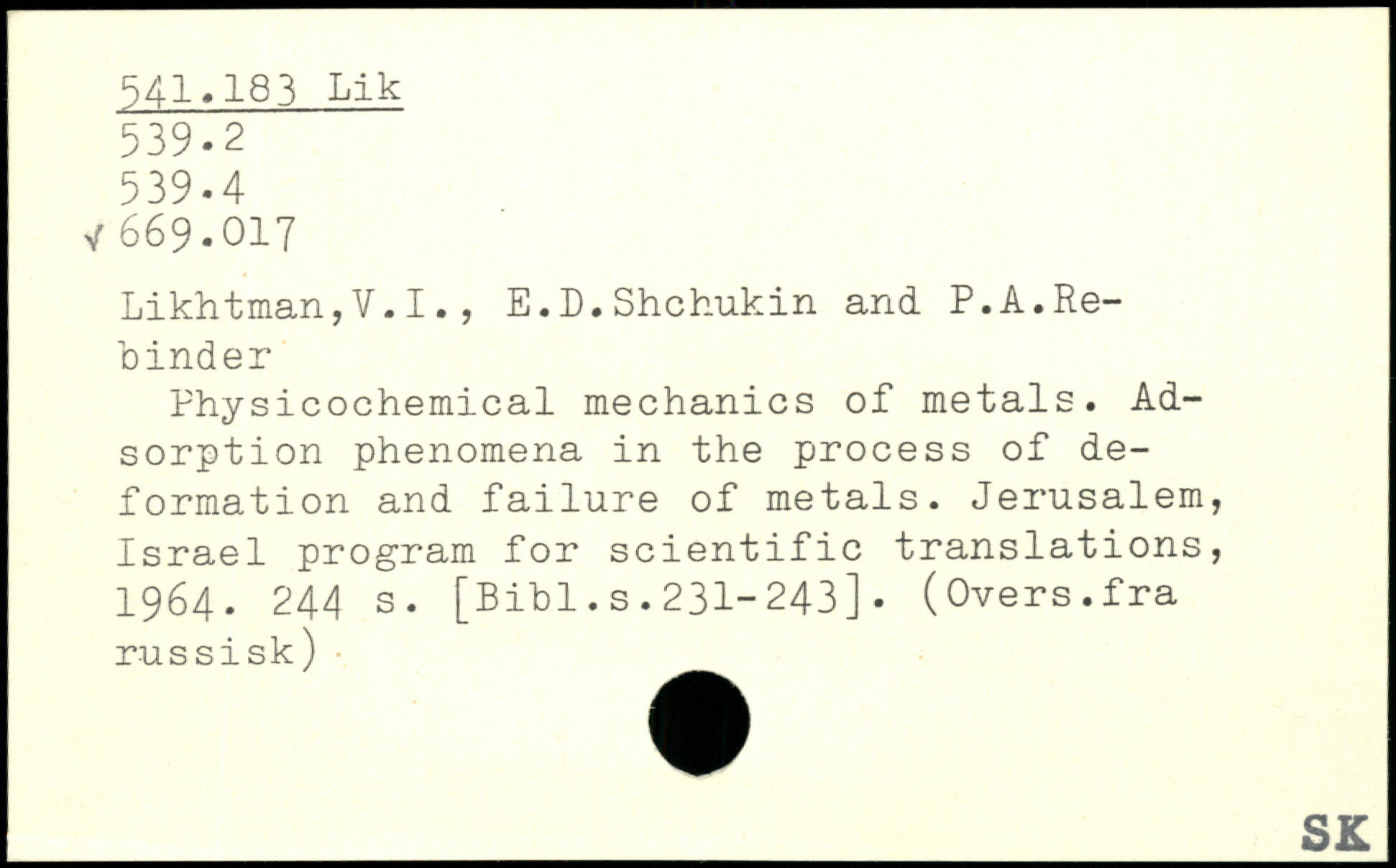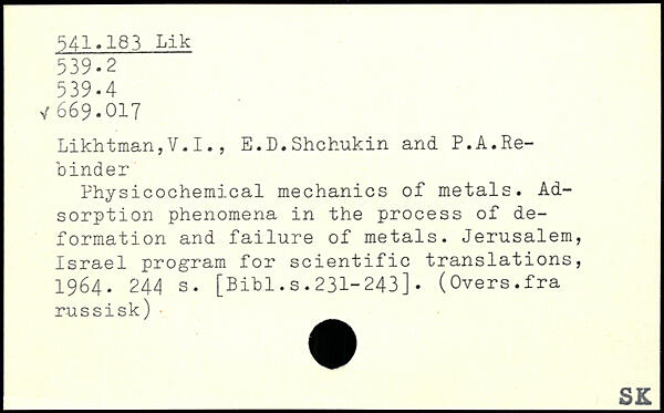 Forfatter: V.I. Likhtman, E.D. Shchukin, P.A. Rebinder