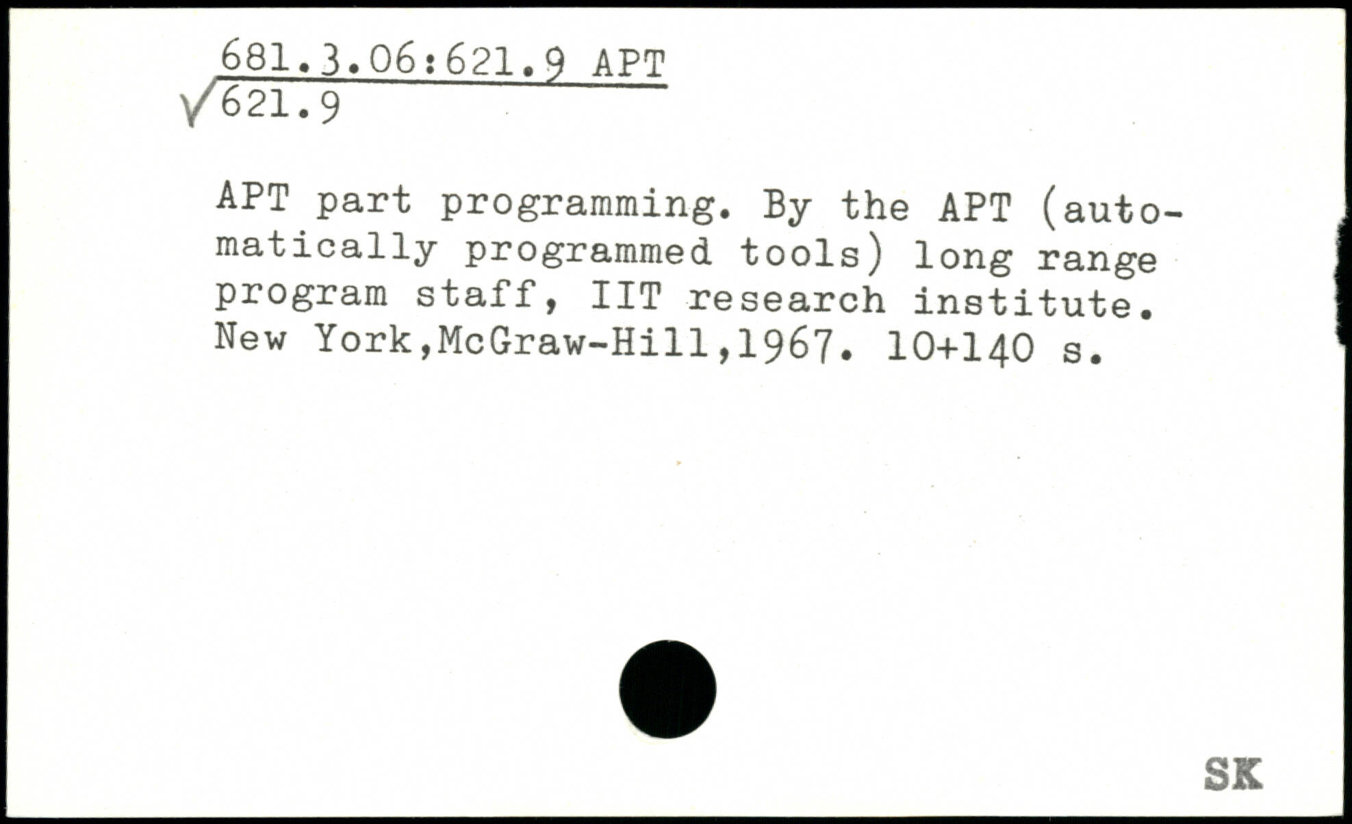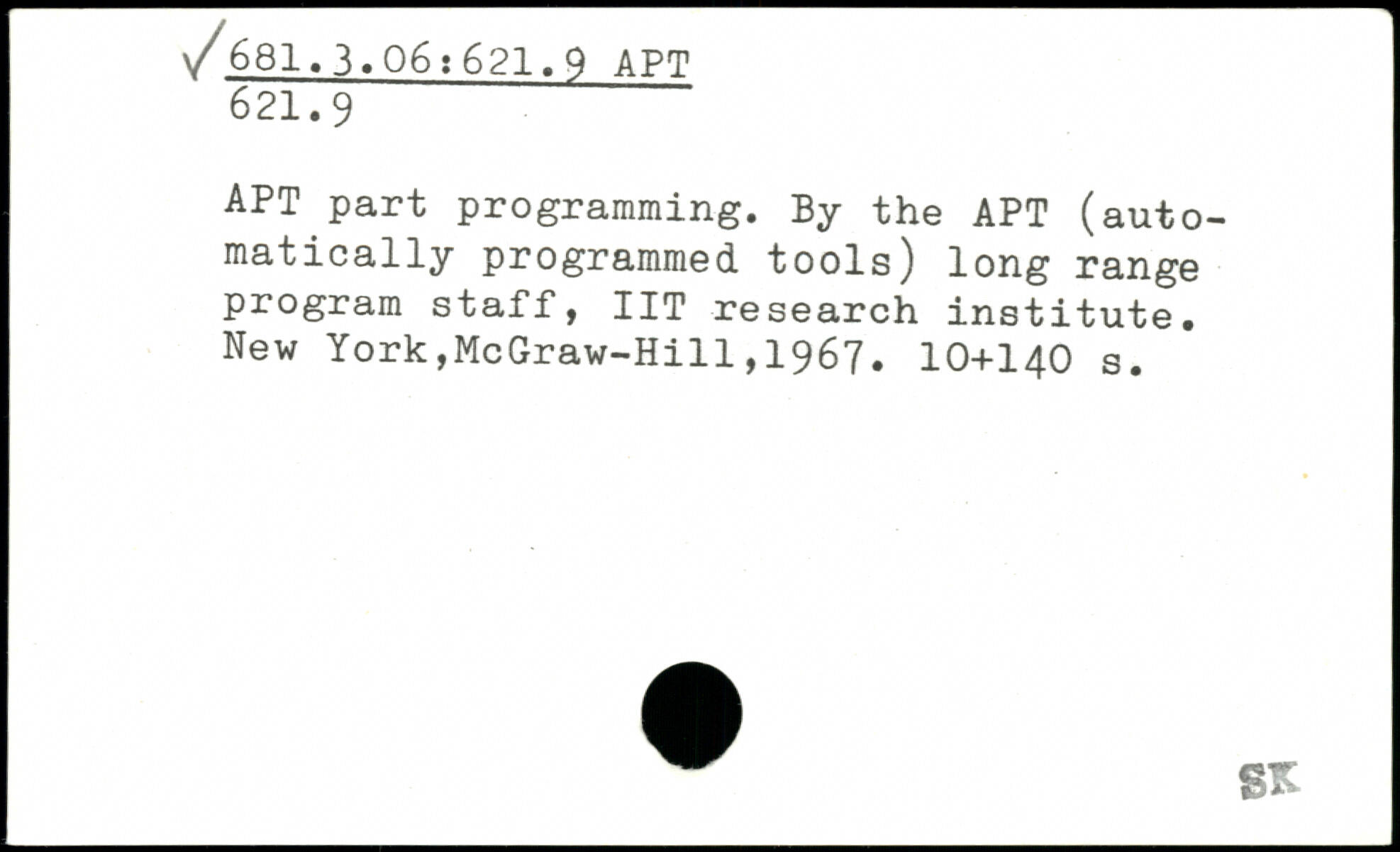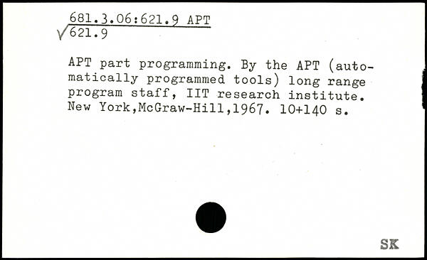 APT part programming. By the APT (automatically programmed tools) long range program staff, IIT research institute.