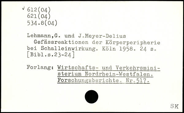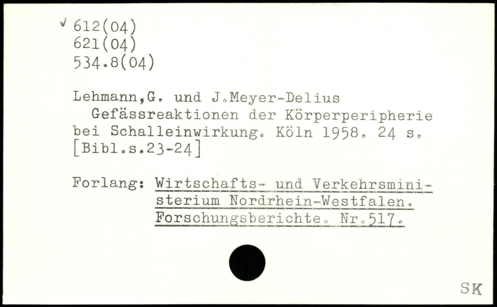 Lehmann,G, und JoMeyer-Delius Gefässreaktionen der Körperperipherie hei Schalleinwirkung