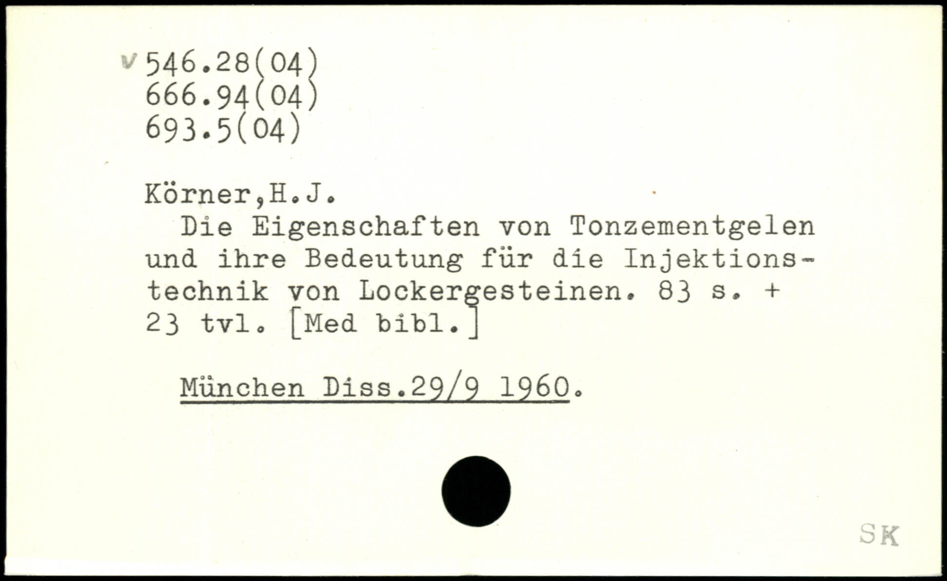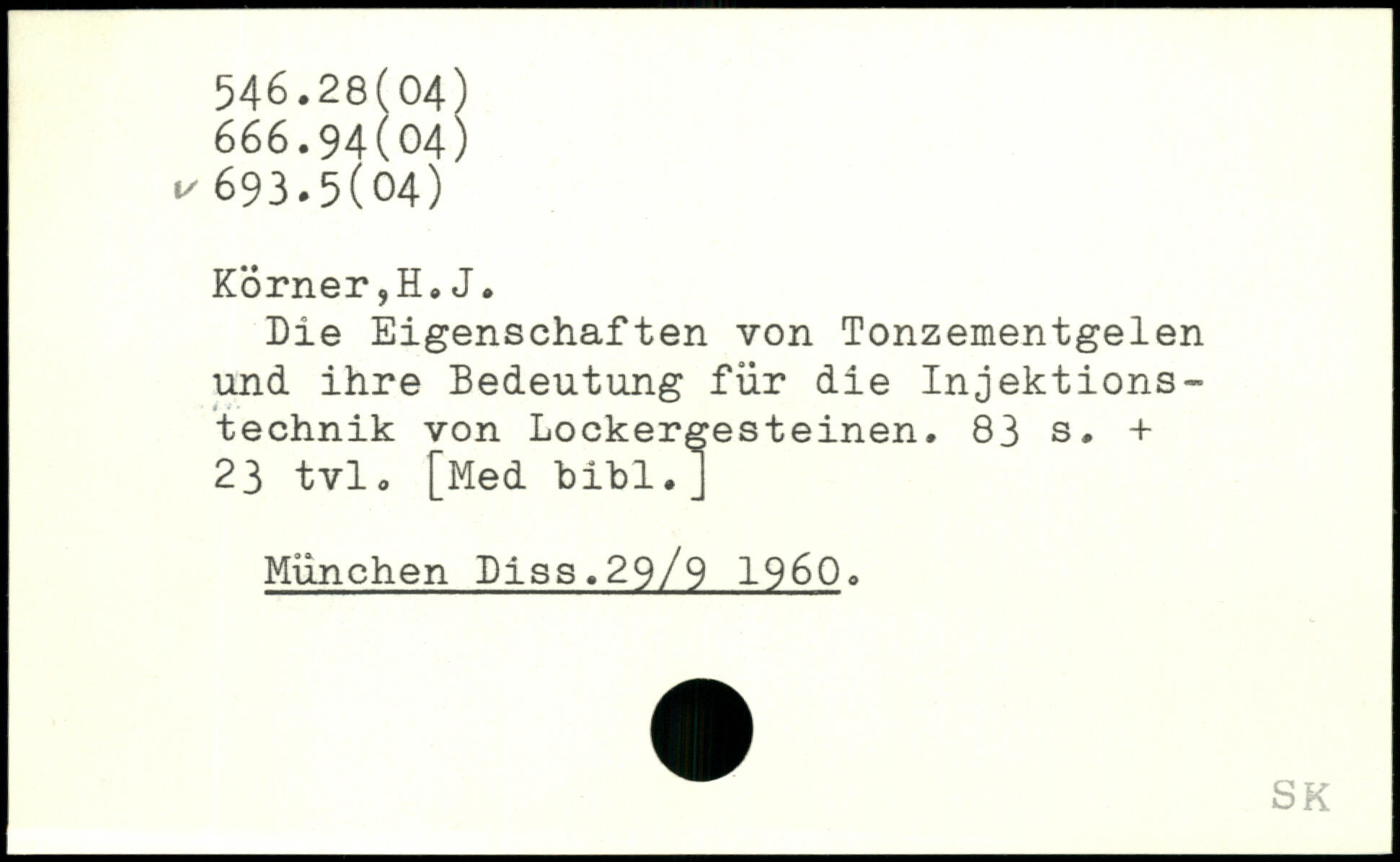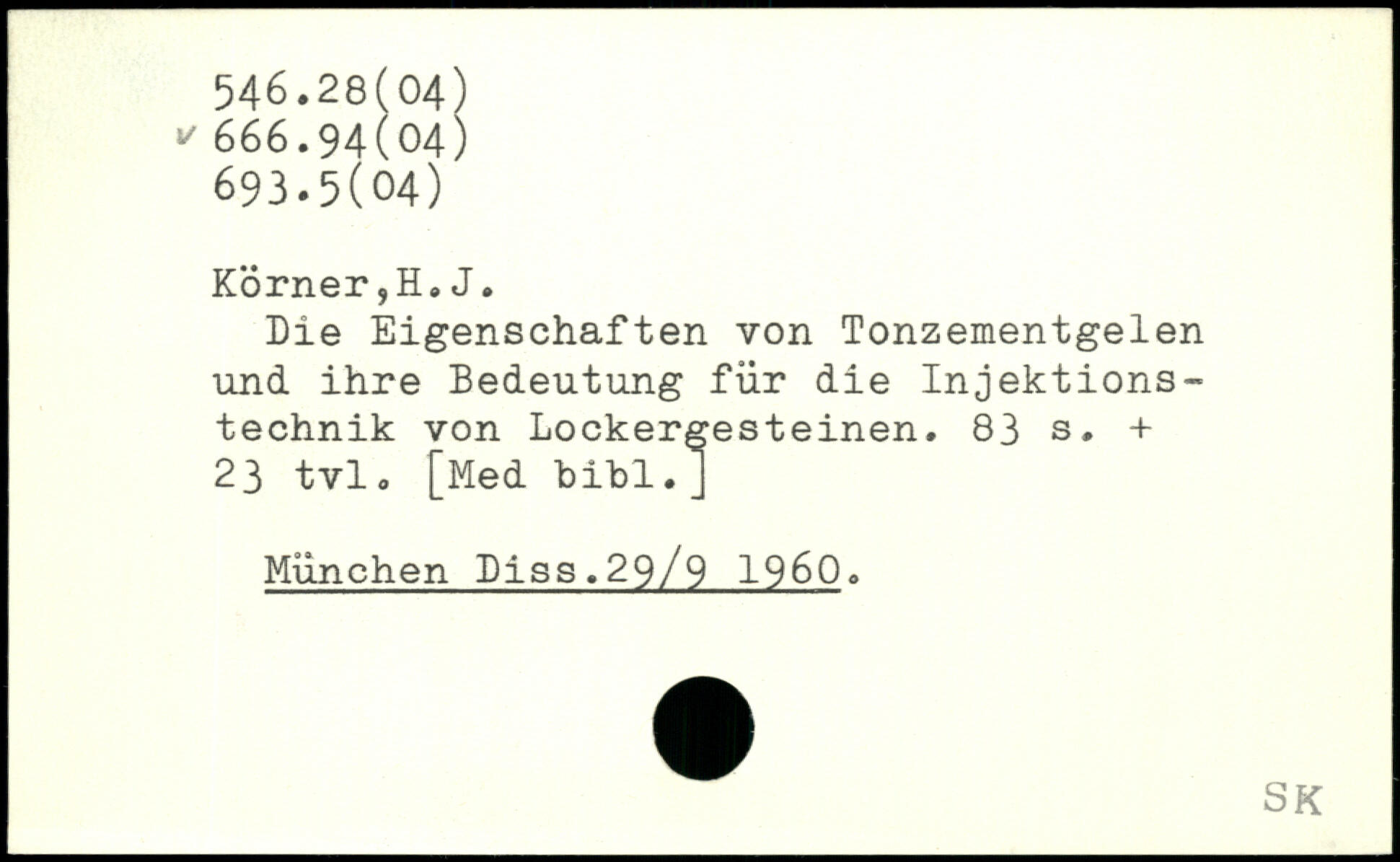 Die Eigenschaften von Tonzementgelen und ihre Bedeutung für die Injektionstechnik von Lockergesteinen.