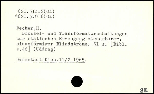 Drossel- und Transformatorschaltungen zur statischen Erzeugung steuerbarer, sinusförmiger Blindströme.