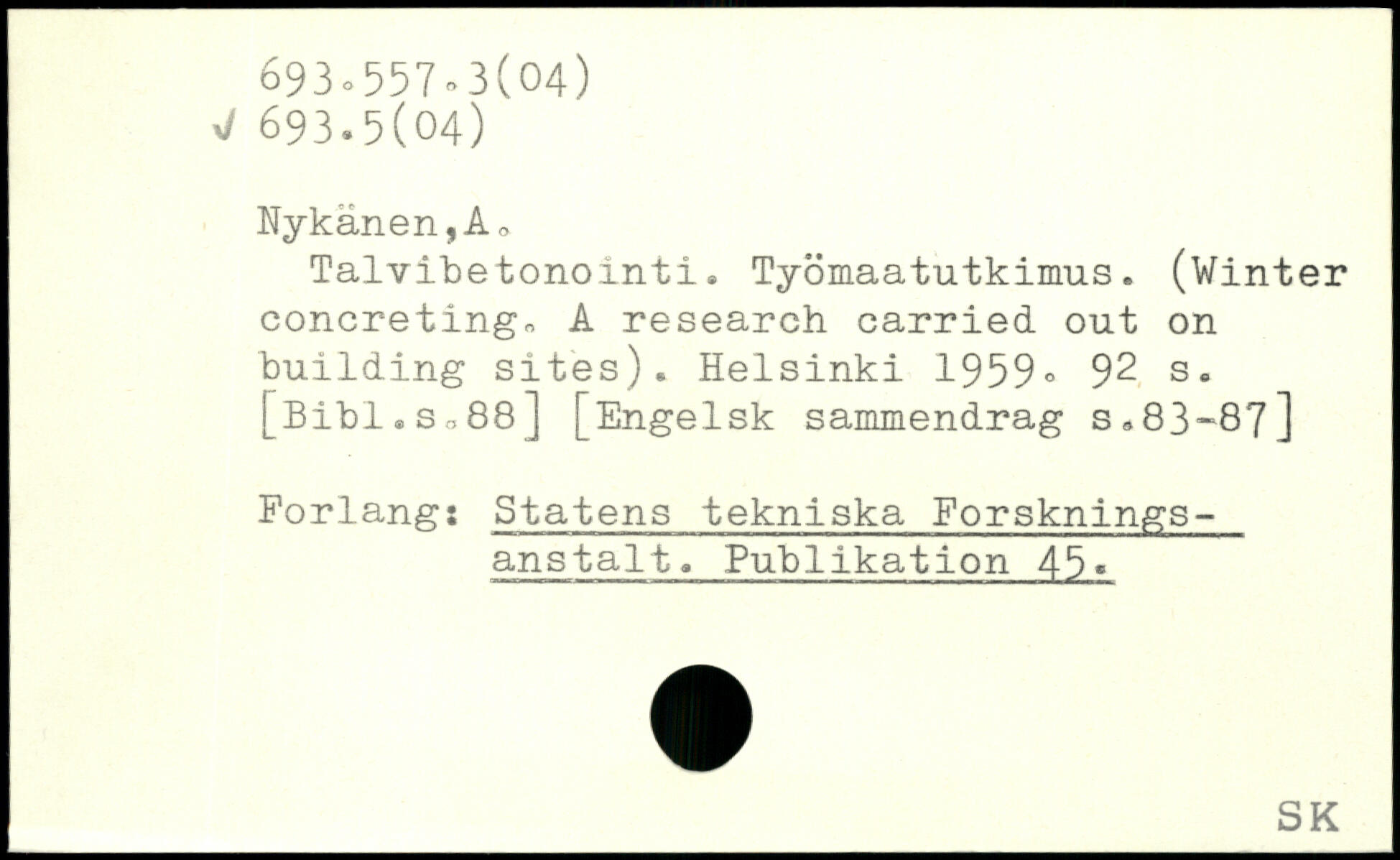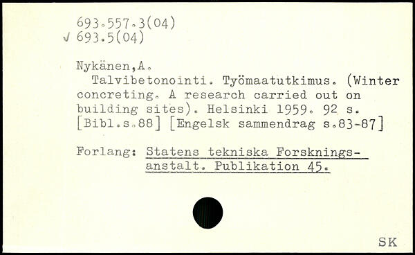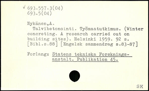 Talvibetonointi. Tyomaatutkimus. (Winter concreting, A research carried out on building sites).